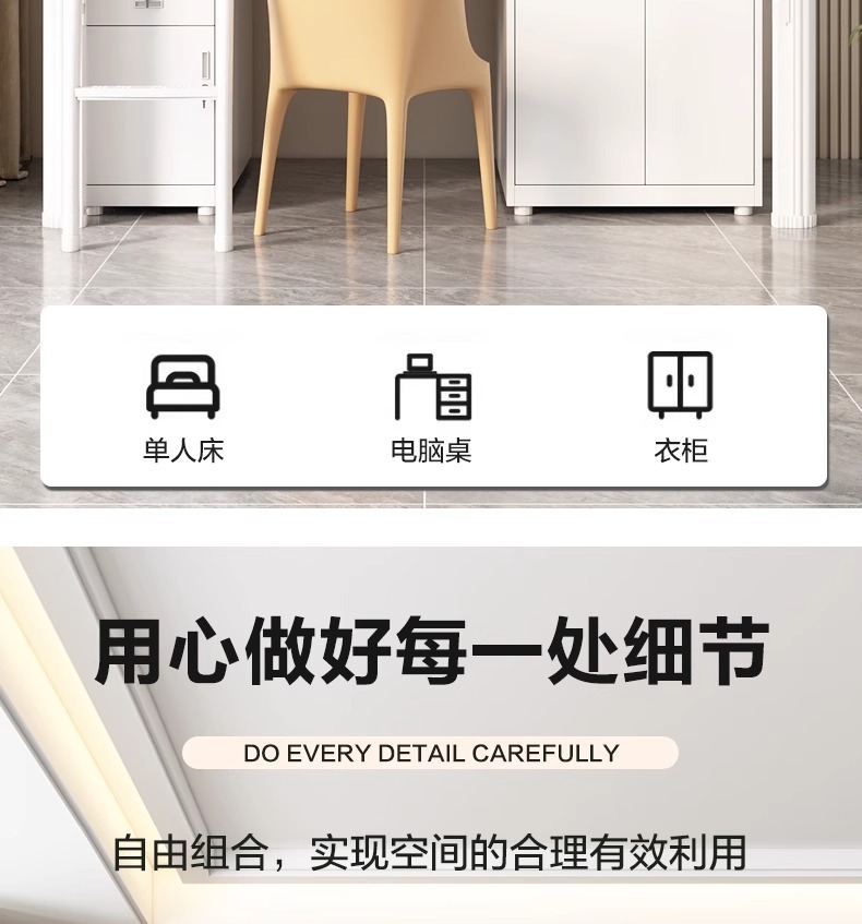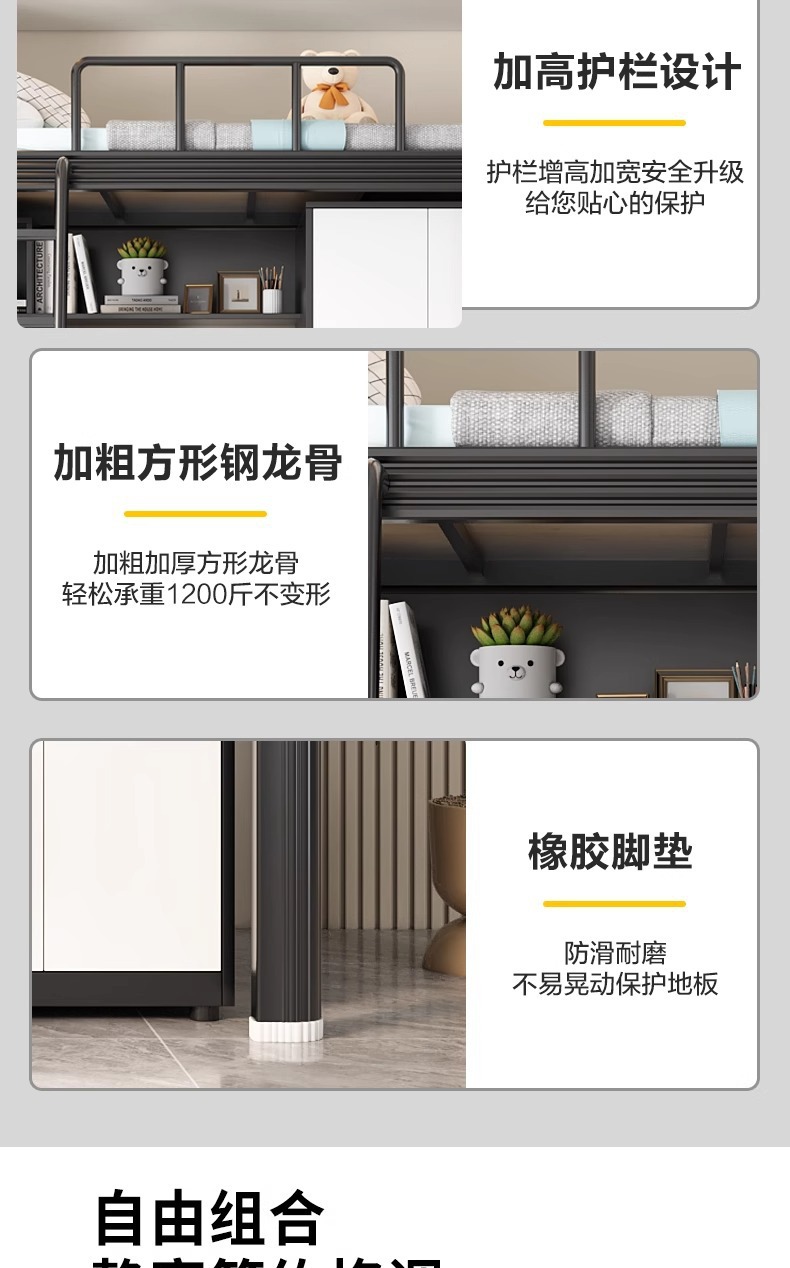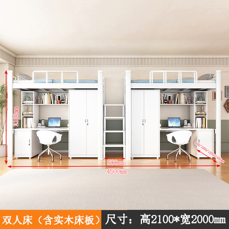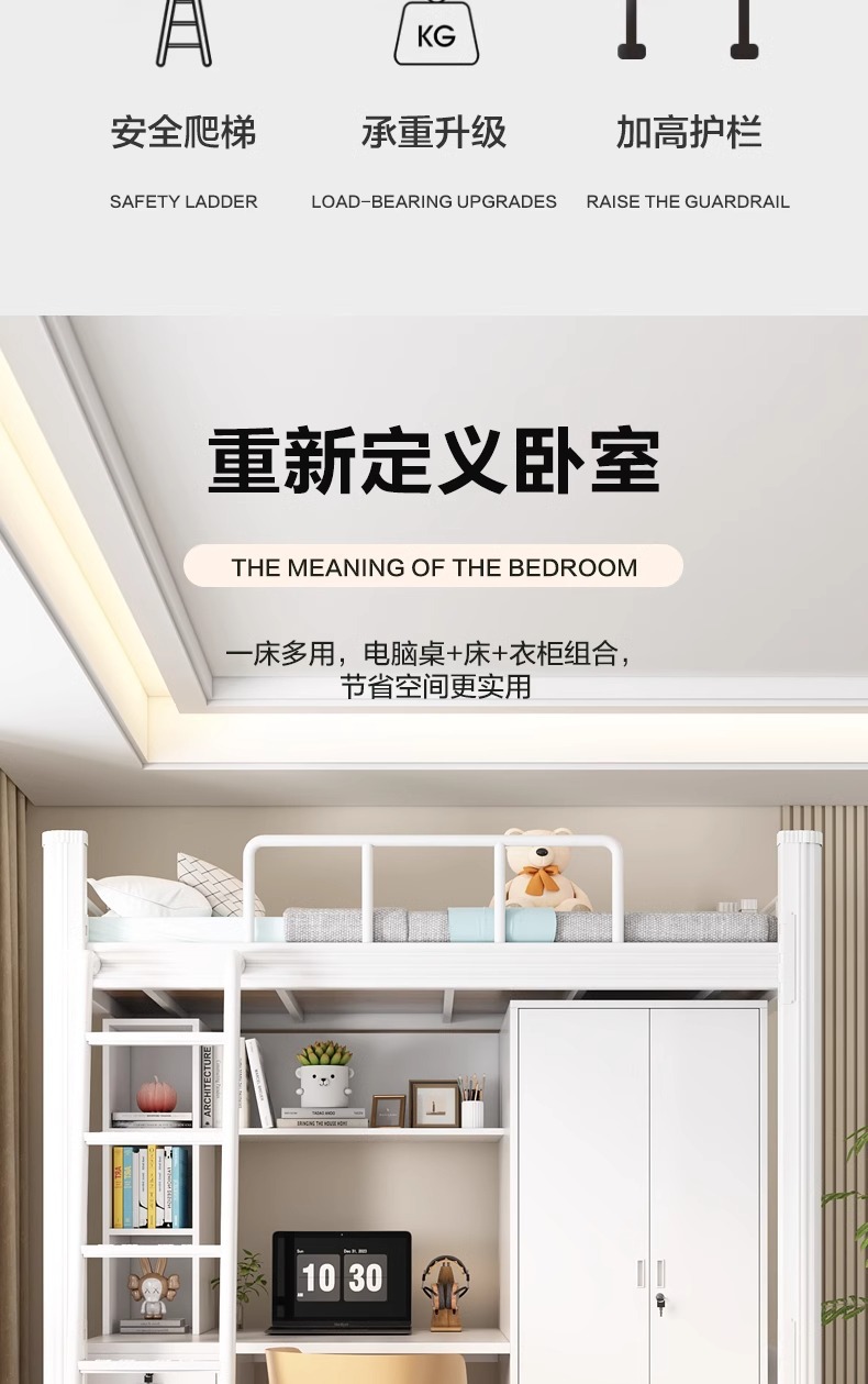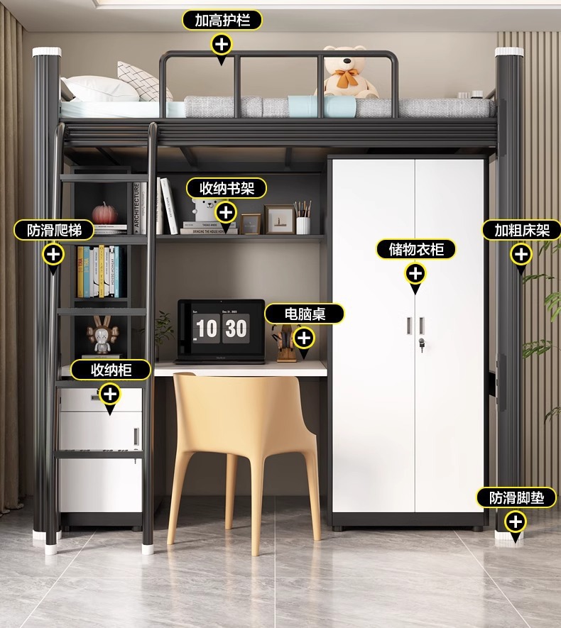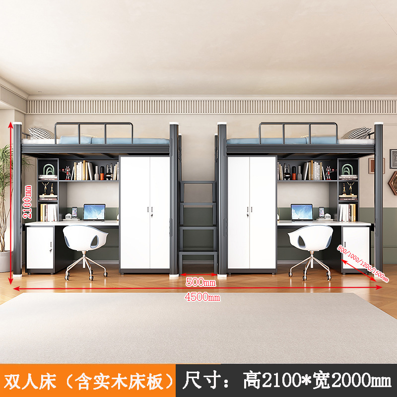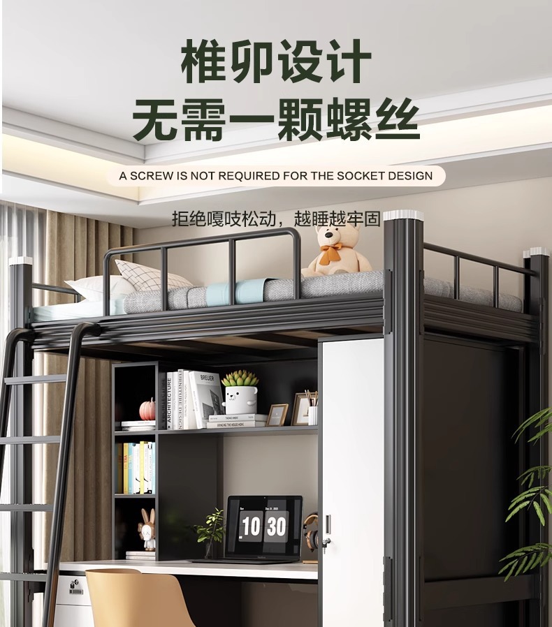 현대적인 미니멀리스트 학교 철제 프레임 침대 책상 포함 로프트 침대 침실 냉간 압연 강철 조합 침대 아파트 상단 침대 및 하단 테이블스토어 가기