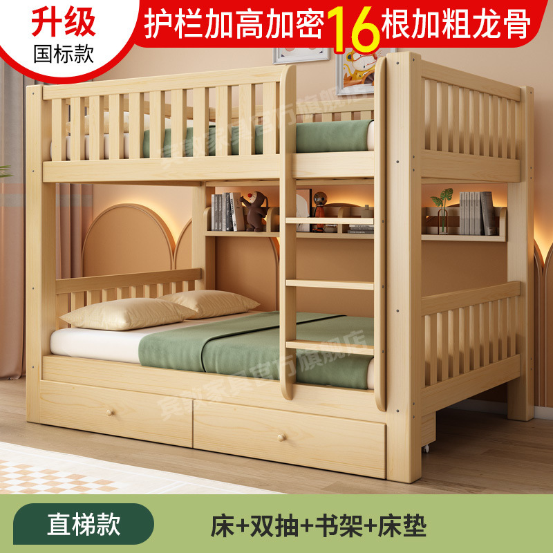 • 두꺼운 직선 사다리 스타일 + 이층 침대 + 서랍 + 책장 + 실크 침실 매트리스