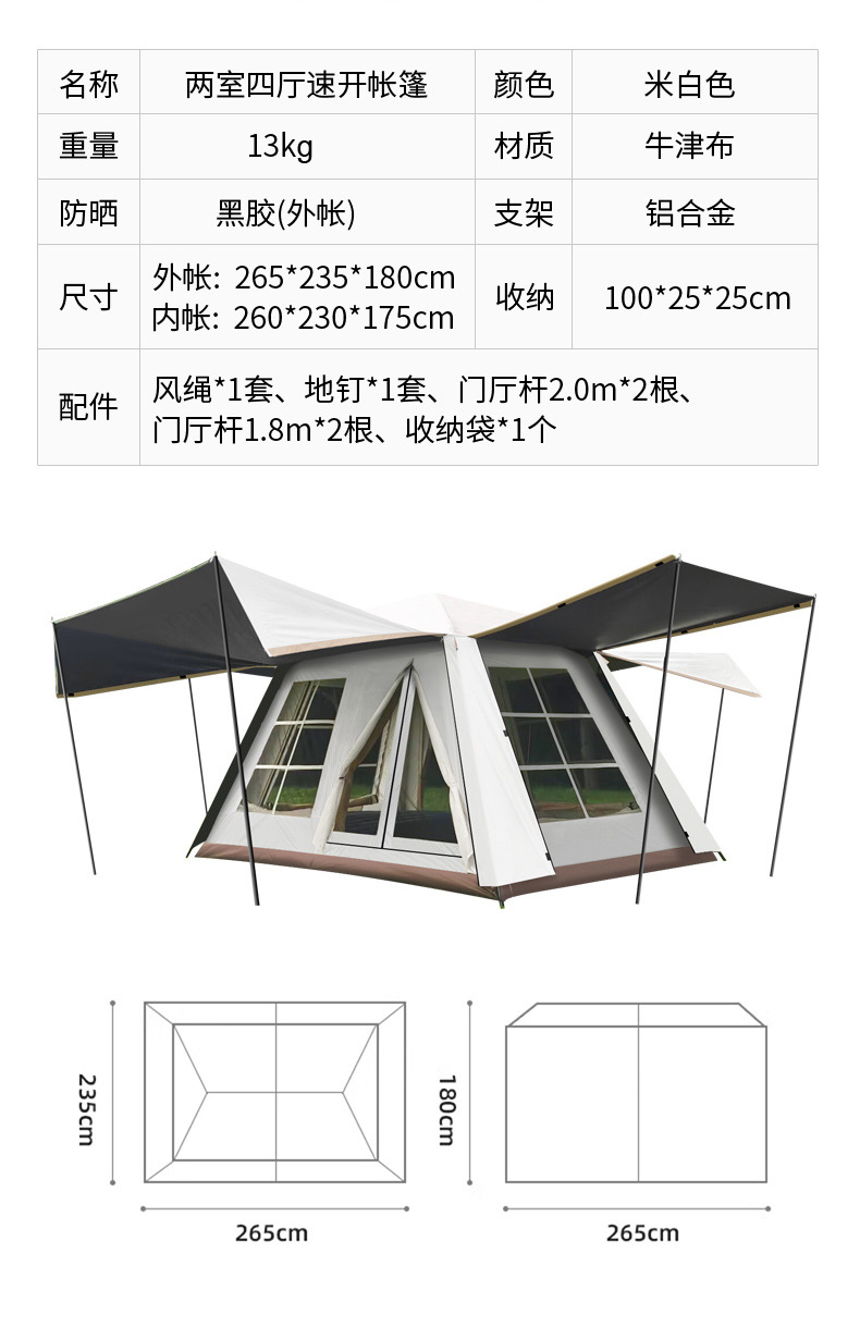 • 대형 4면 더블 챔버 텐트