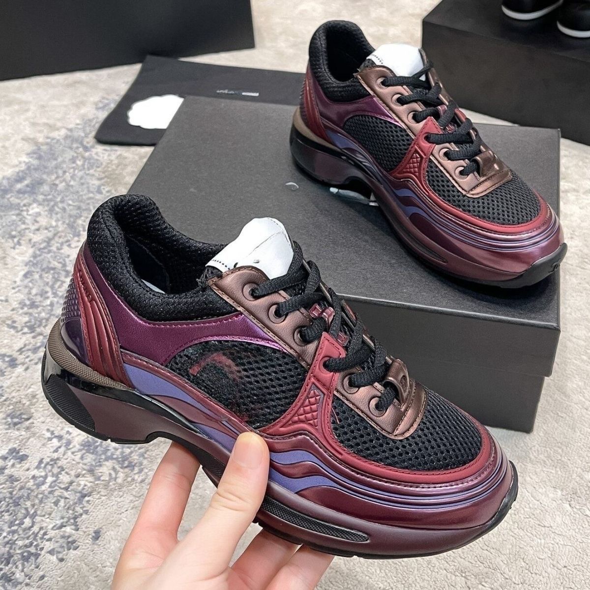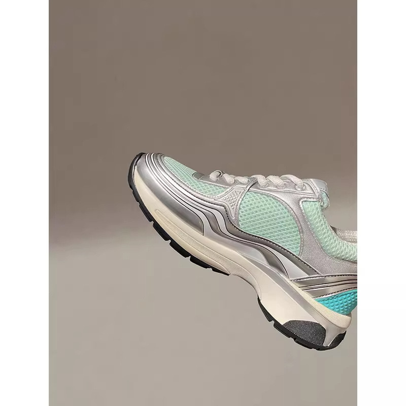 여성용 하이 버전 실버 호크 킹 리틀 프래그런스 아빠 신발, 여성용 두꺼운 밑창 캐주얼 컬러 블록 메쉬 통기성 운동화스토어 가기