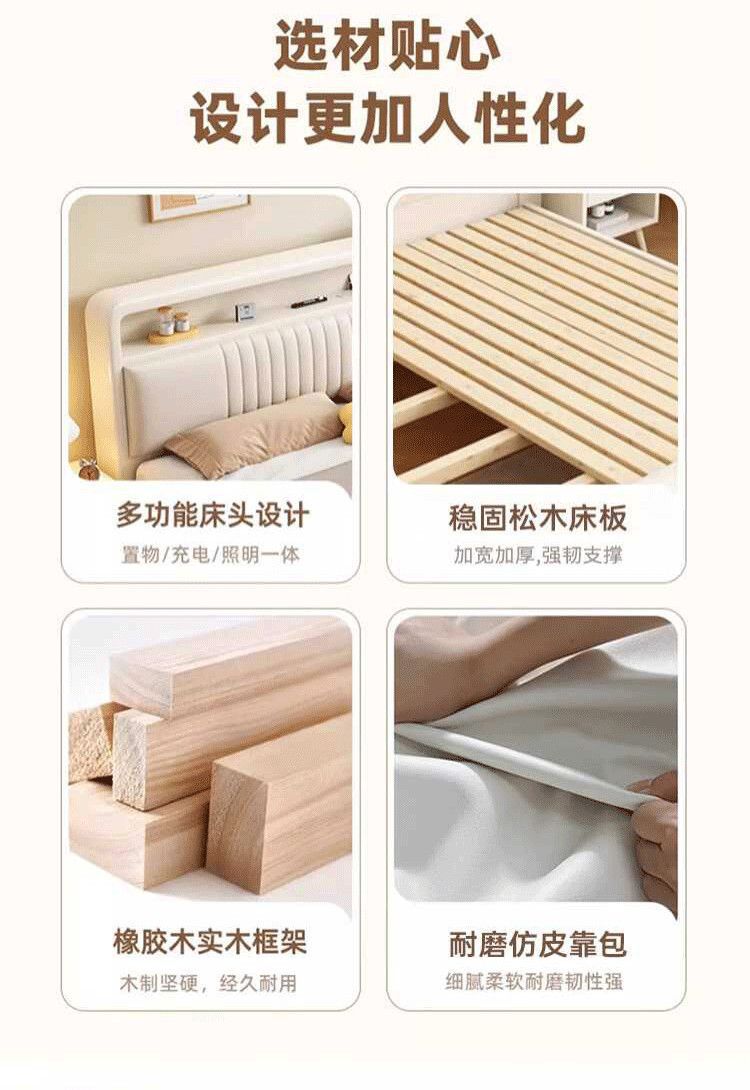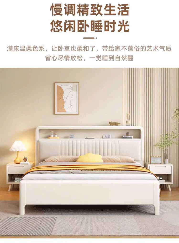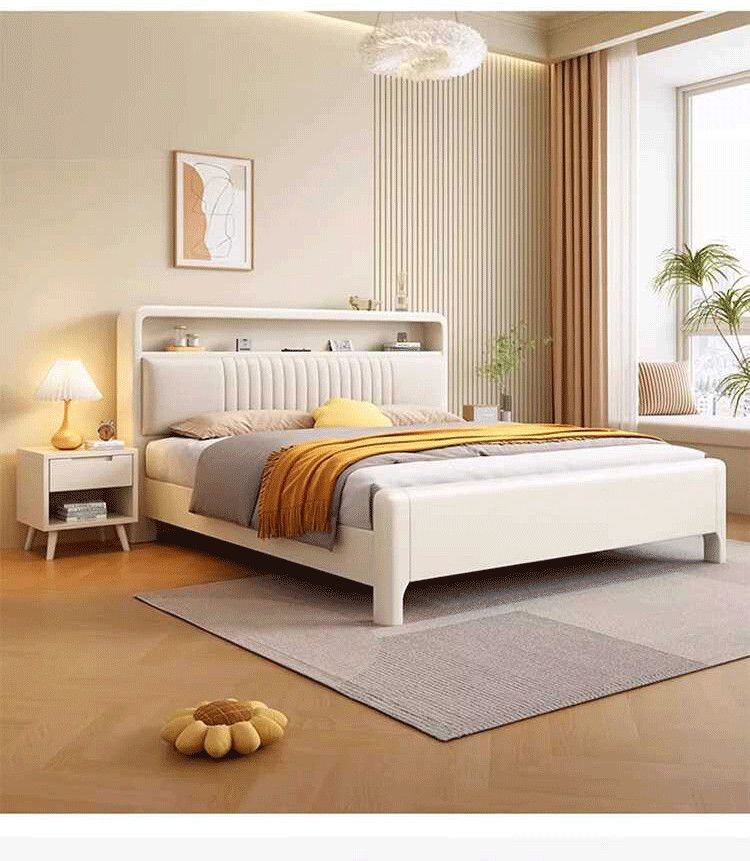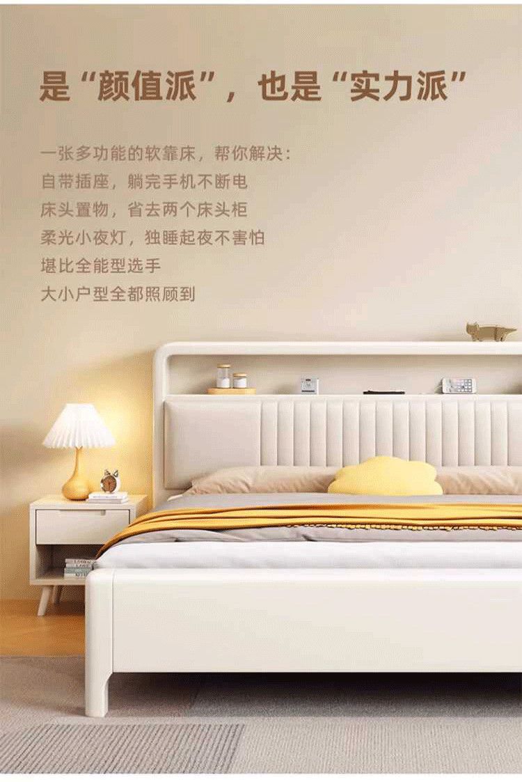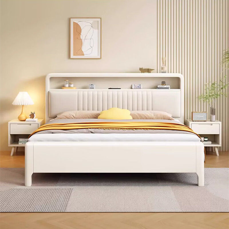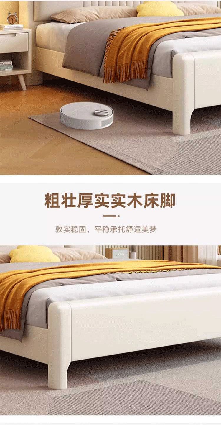 크림 스타일 풀 스토리지 침대 흰색 전체 단단한 나무 나무 순수한 나무 모 끈 구조 현대 간단한 침대 부드러운 고무 나무