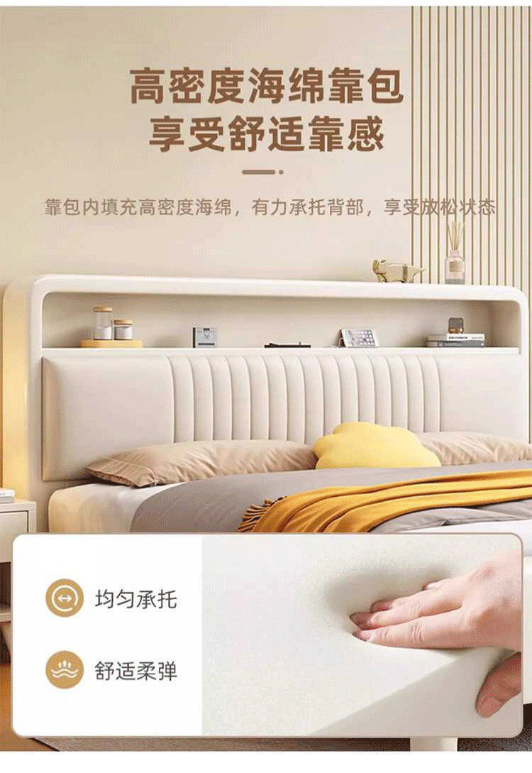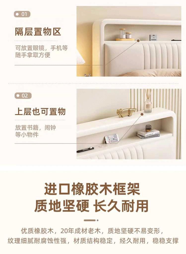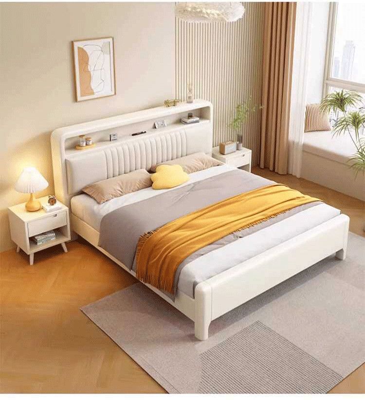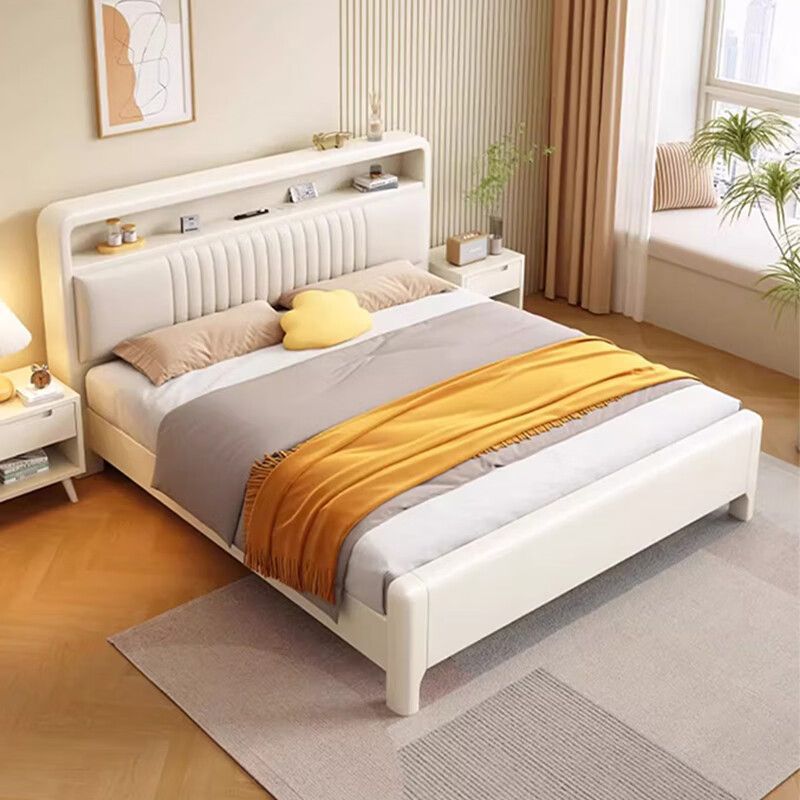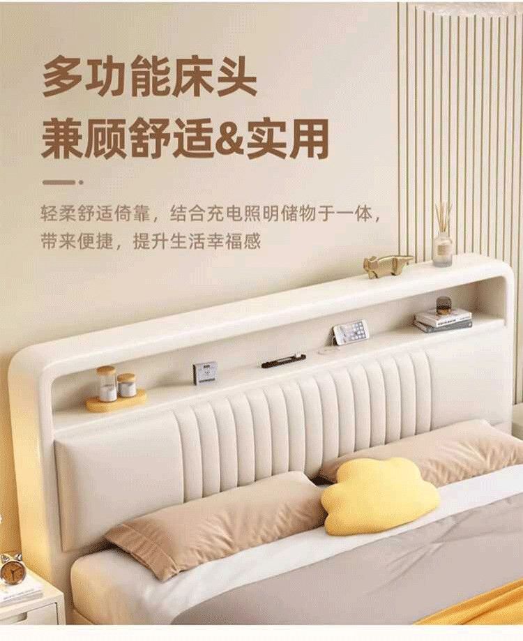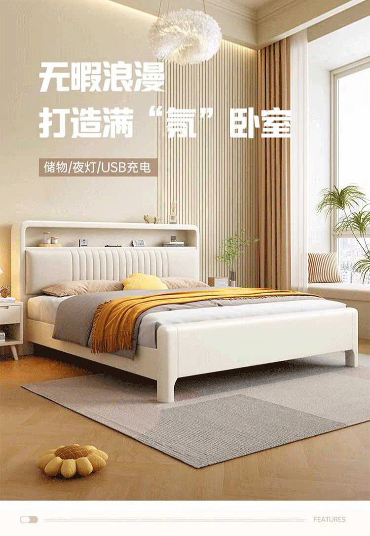 크림 스타일 풀 스토리지 침대 흰색 전체 단단한 나무 나무 순수한 나무 모 끈 구조 현대 간단한 침대 부드러운 고무 나무