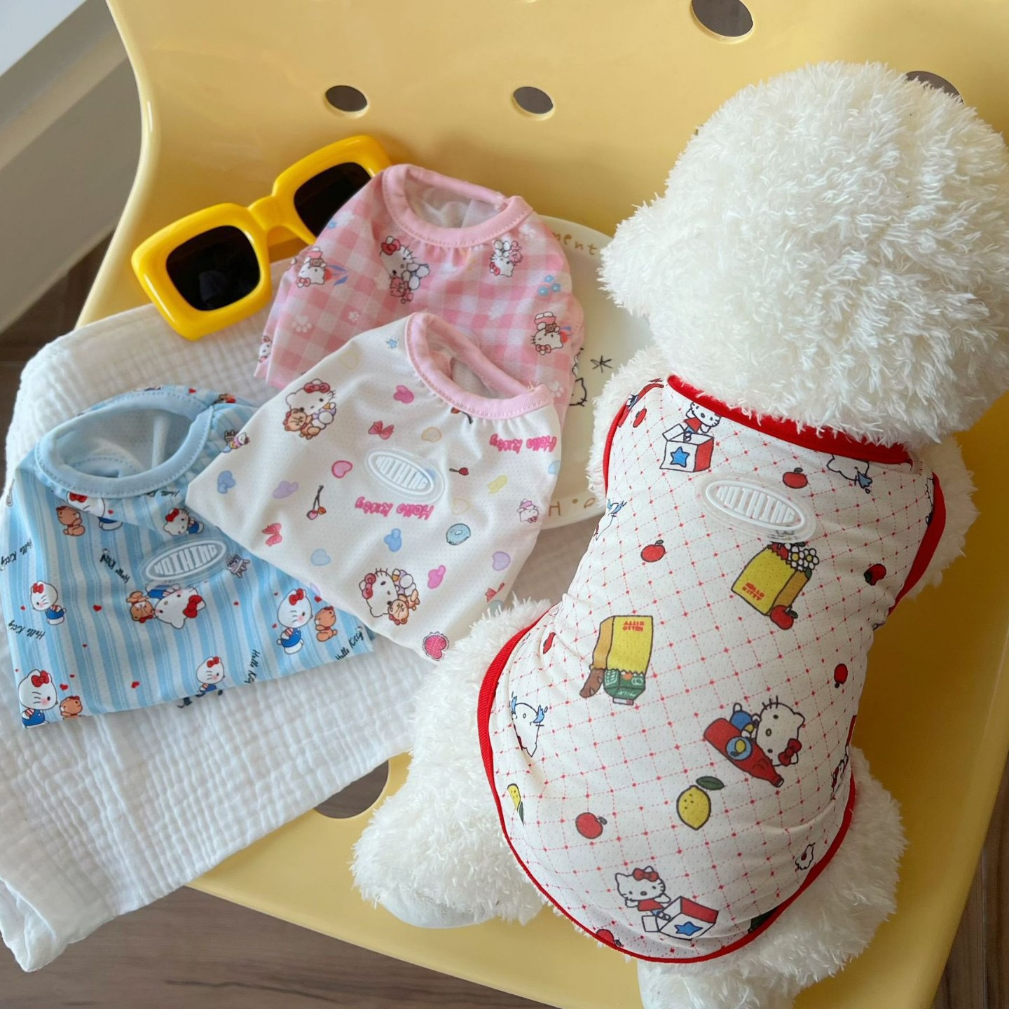 개 애완 동물 옷 민소매 조끼 만화 귀여운 인쇄 멋진 옷 고양이 작은 개 비숑 테디 포메라니안스토어 가기