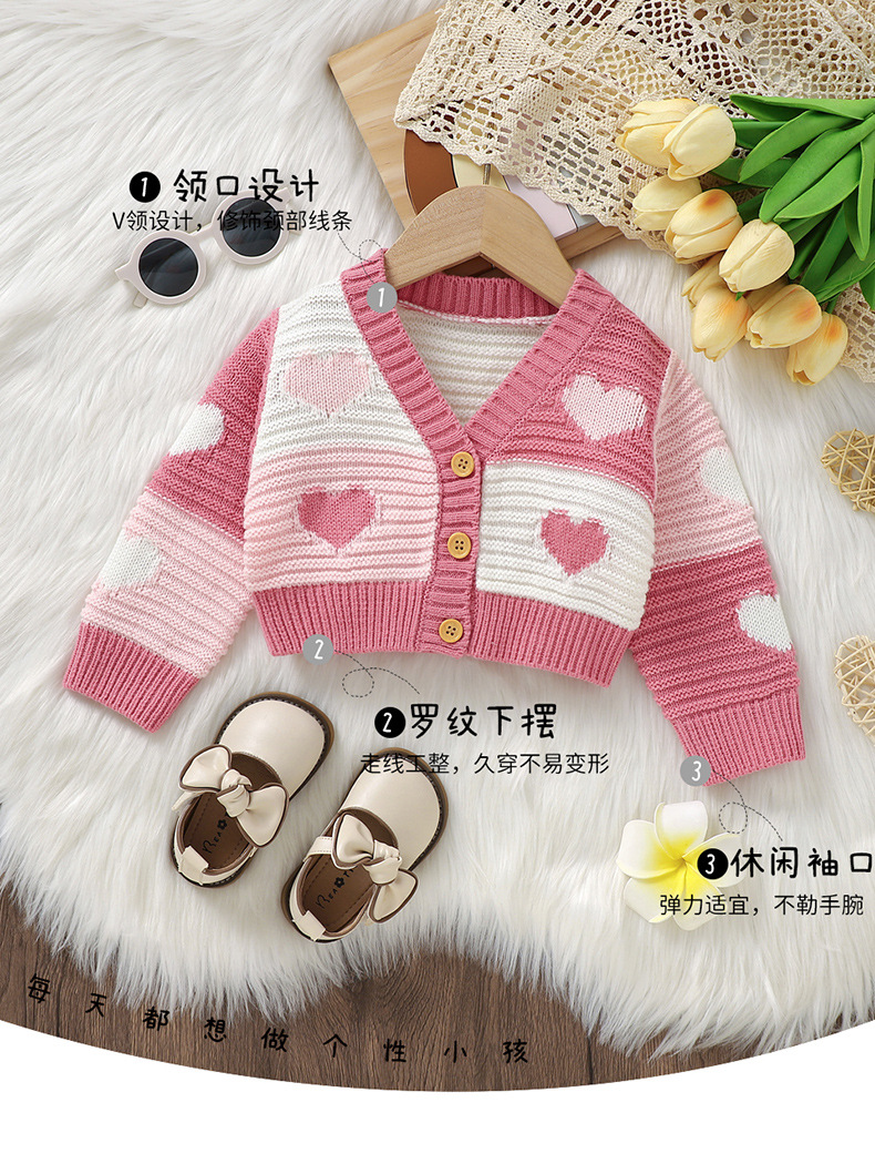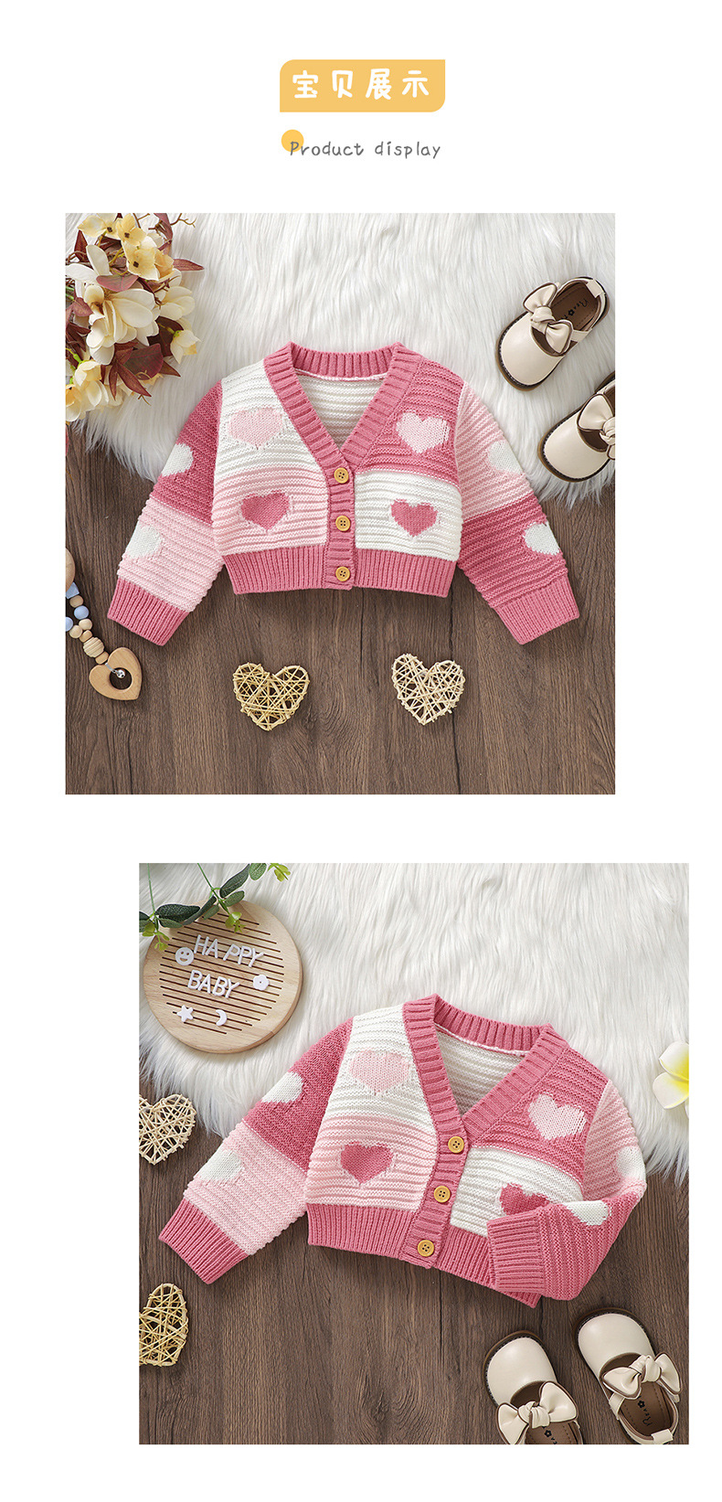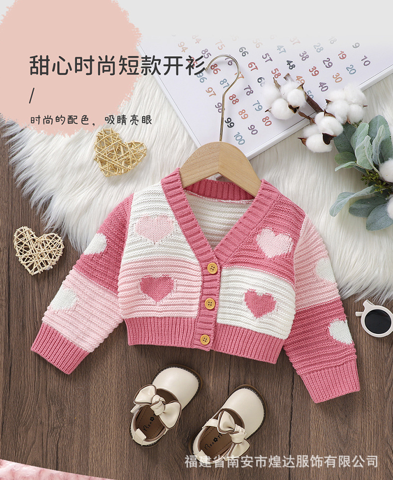 INS 뜨거운 판매 가을, 겨울 새로운 스타일 유아 사랑 자카드 재킷 아기 소녀 대비 색 v 넥 스웨터 아기 스웨터