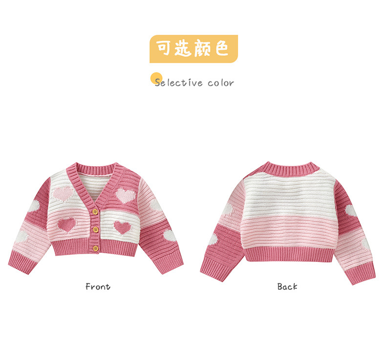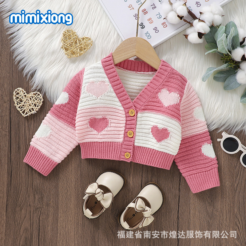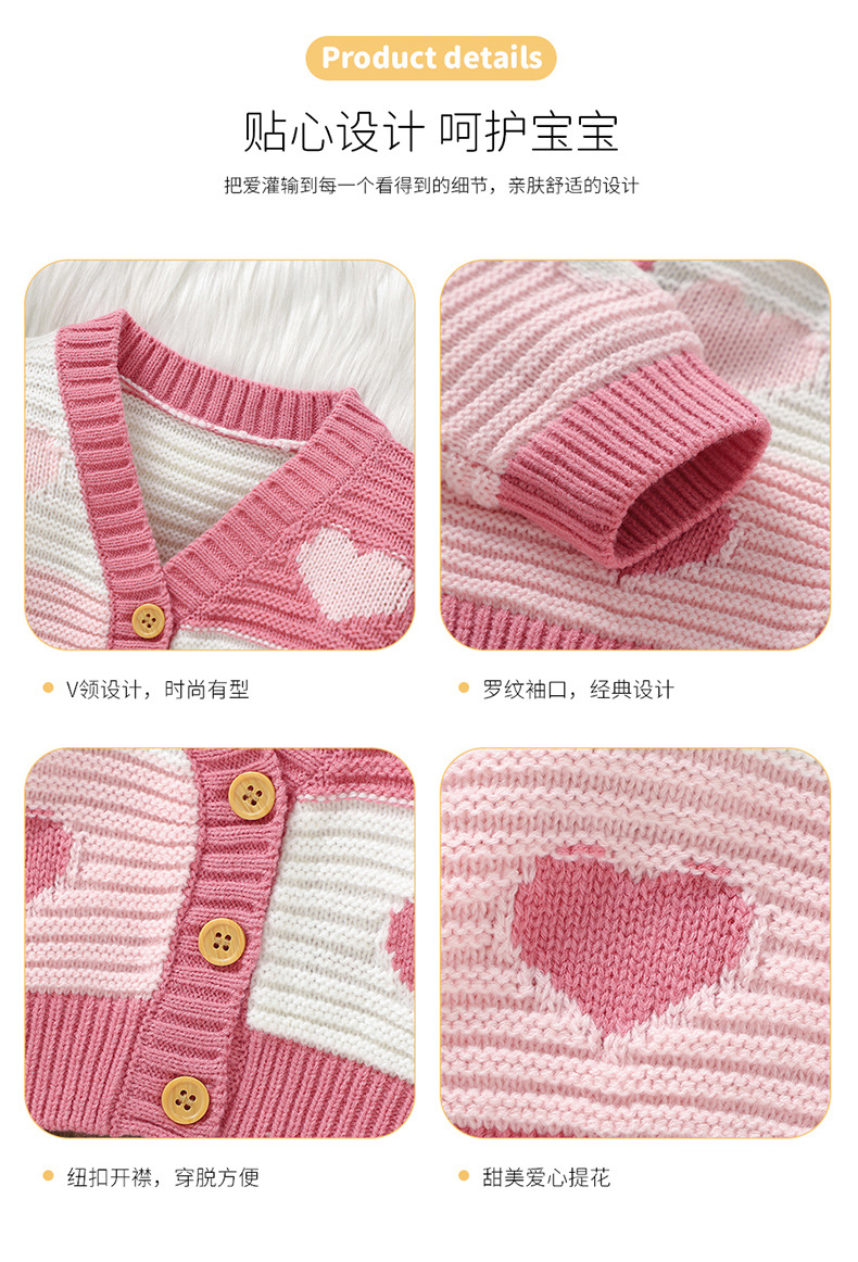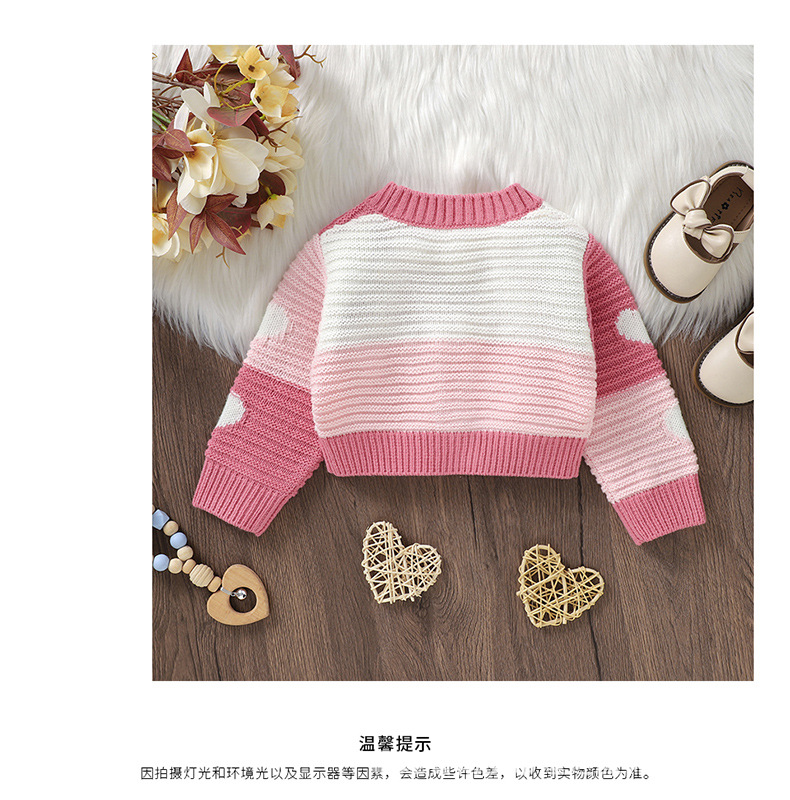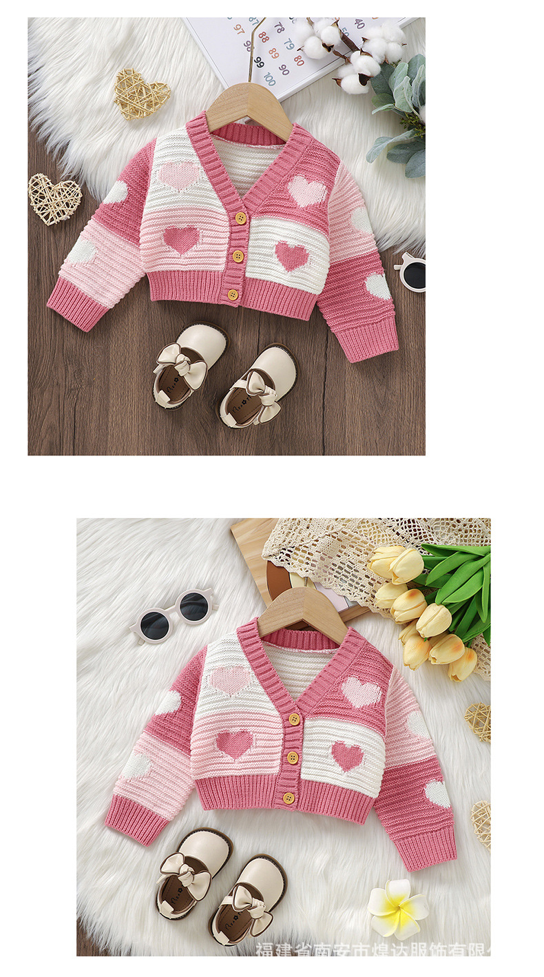 INS 뜨거운 판매 가을, 겨울 새로운 스타일 유아 사랑 자카드 재킷 아기 소녀 대비 색 v 넥 스웨터 아기 스웨터