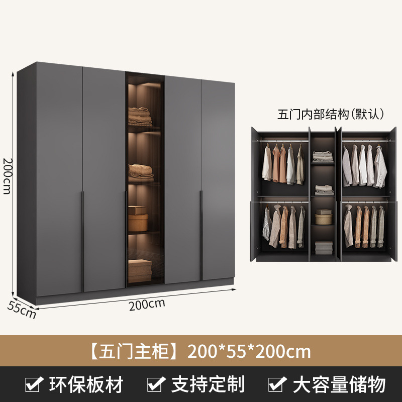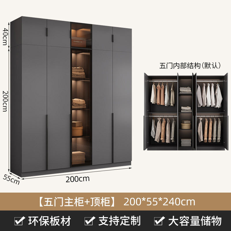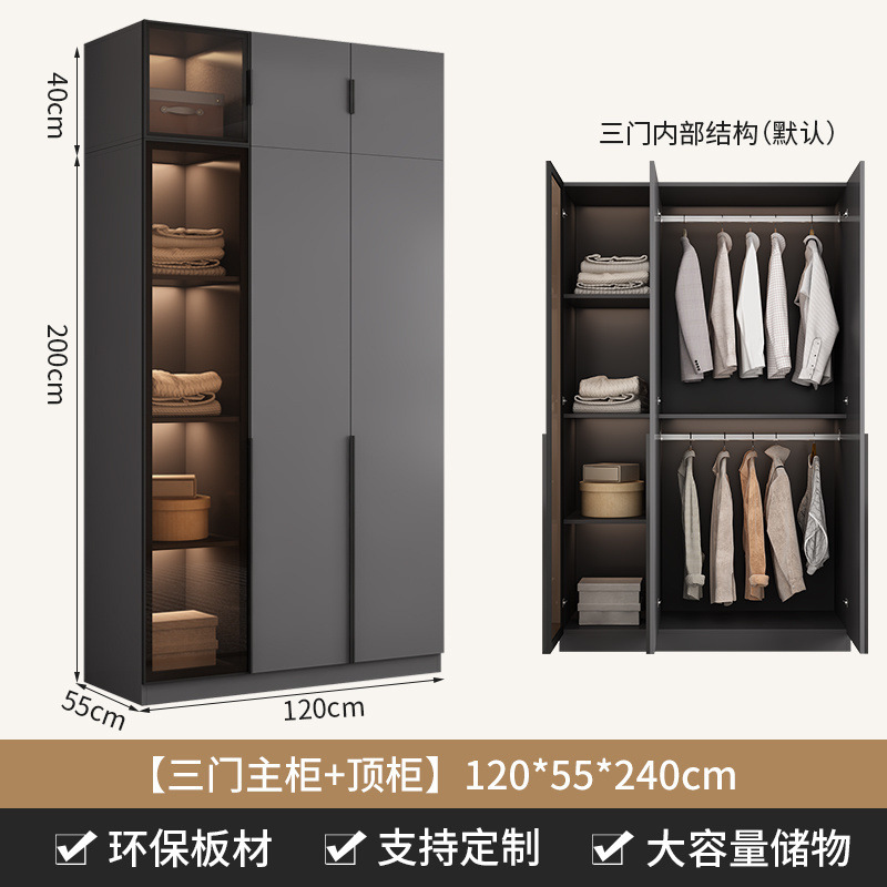 가벼운 고급 옷장 홈 침실 단단한 나무 현대 간단한 저장 간단한 유리 도어 조합 캐비닛 대형 옷장