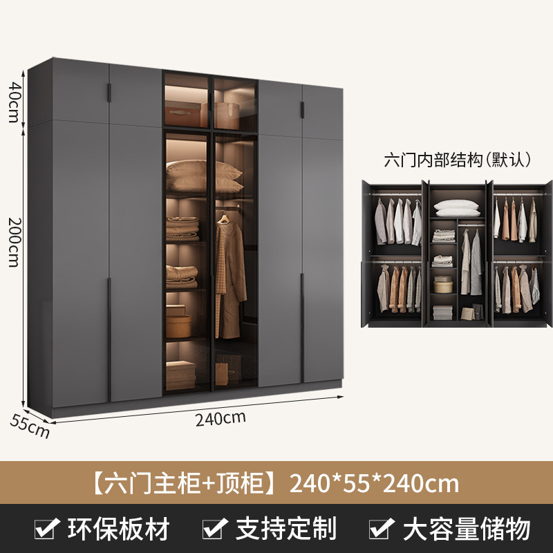 가벼운 고급 옷장 홈 침실 단단한 나무 현대 간단한 저장 간단한 유리 도어 조합 캐비닛 대형 옷장스토어 가기