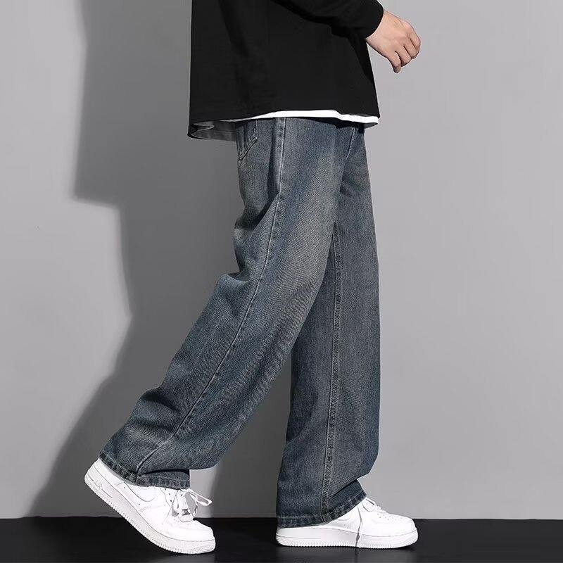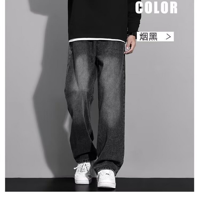 2025년 신형 남성용 스트레이트 청바지, 얼룩 방지, 루즈한 캐주얼 팬츠, 미국 트렌드 남자 멋쟁이 와이드 팬츠스토어 가기