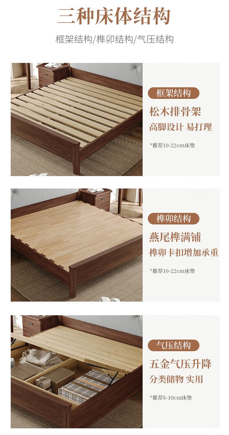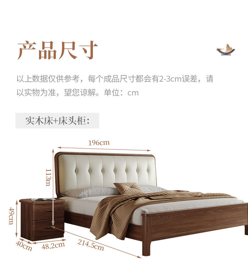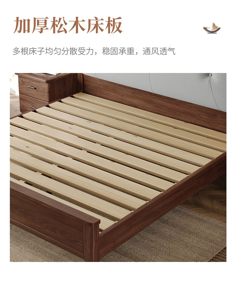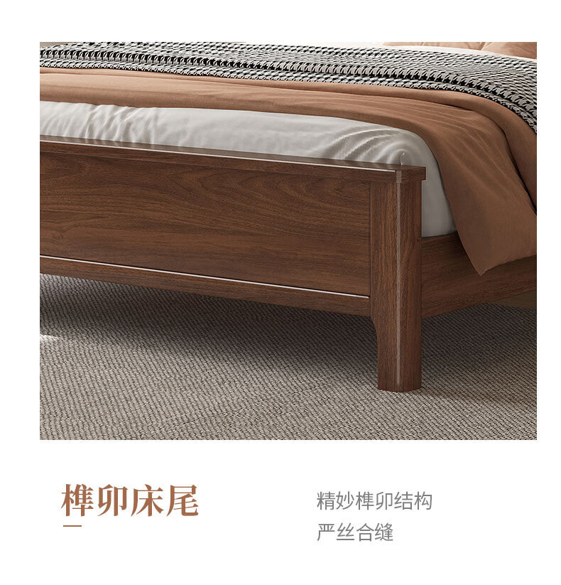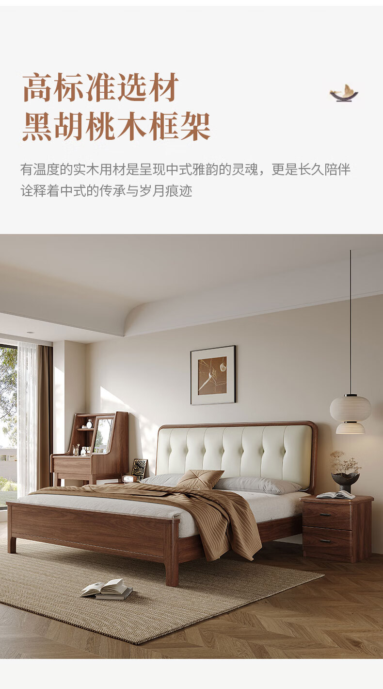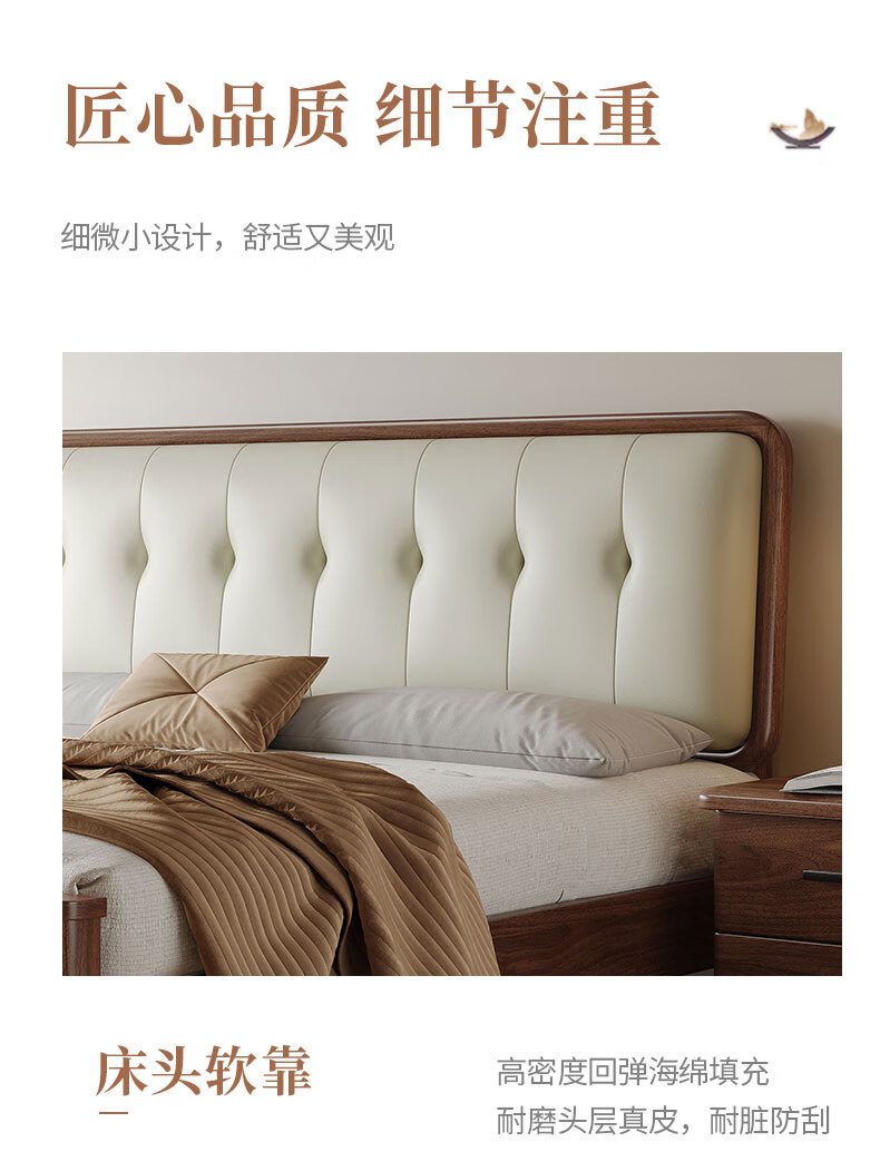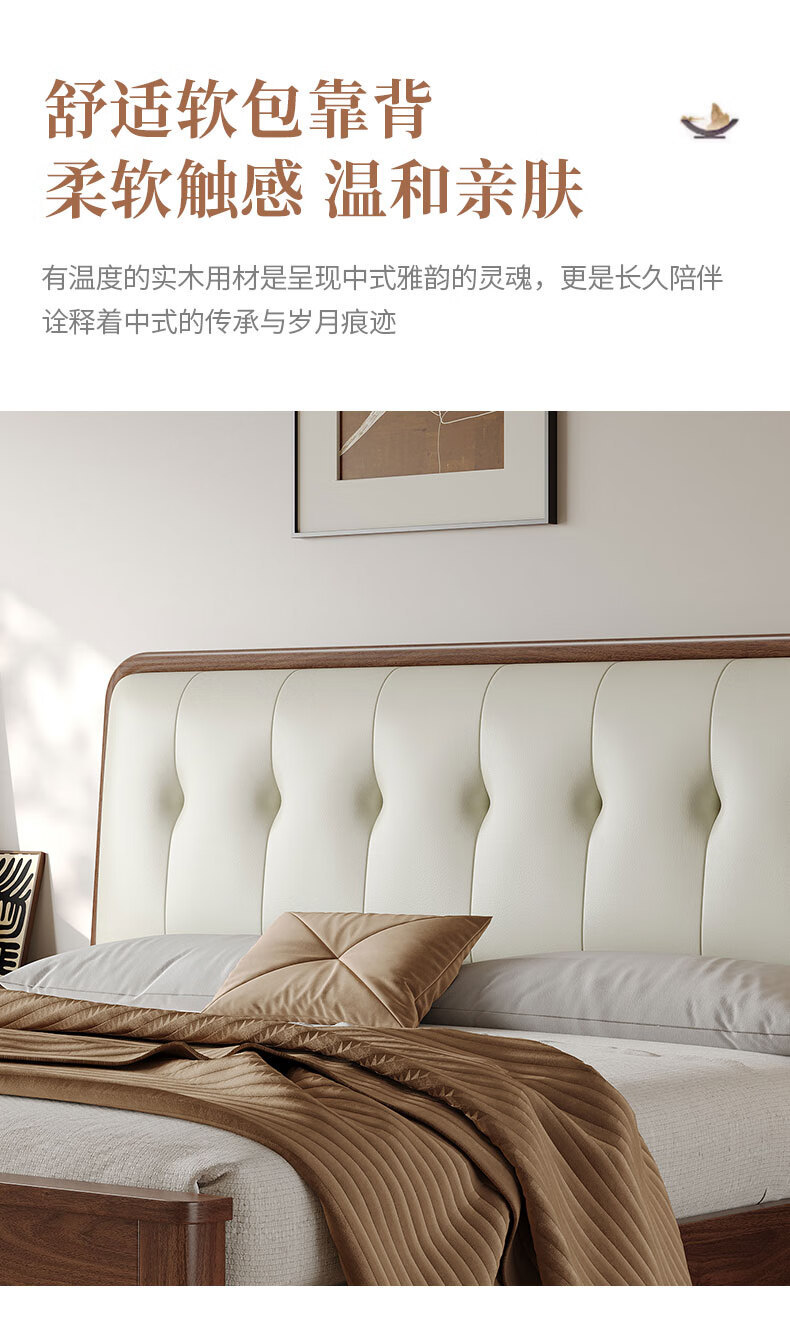 북유럽 단단한 나무 침대 2025 새로운 검은 호두 현대 간단한 가죽 침대 부드러운 가방 침대 버클 침대 와비사비 스타일