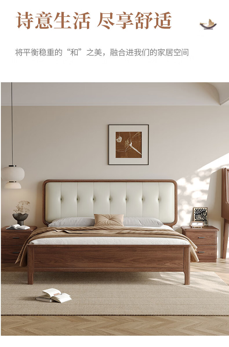 북유럽 단단한 나무 침대 2025 새로운 검은 호두 현대 간단한 가죽 침대 부드러운 가방 침대 버클 침대 와비사비 스타일스토어 가기