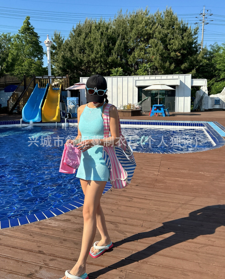 인스 스타일 시스루 섹시 살 커버 슬리밍 원피스 비키니 작은 가슴 순수한 욕망 수영복 여성 하이 엔드 백리스