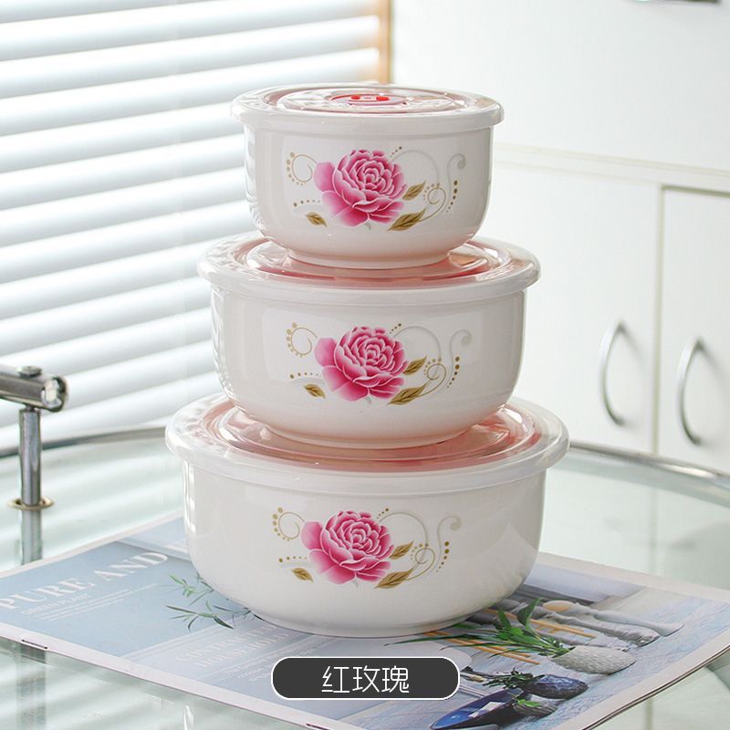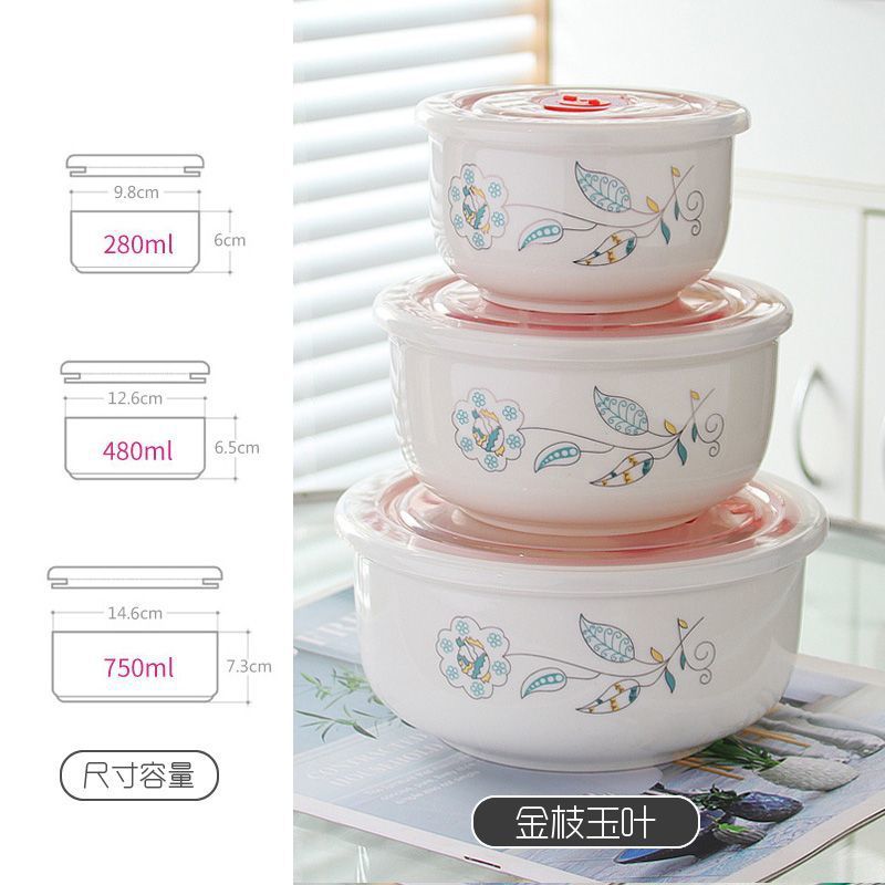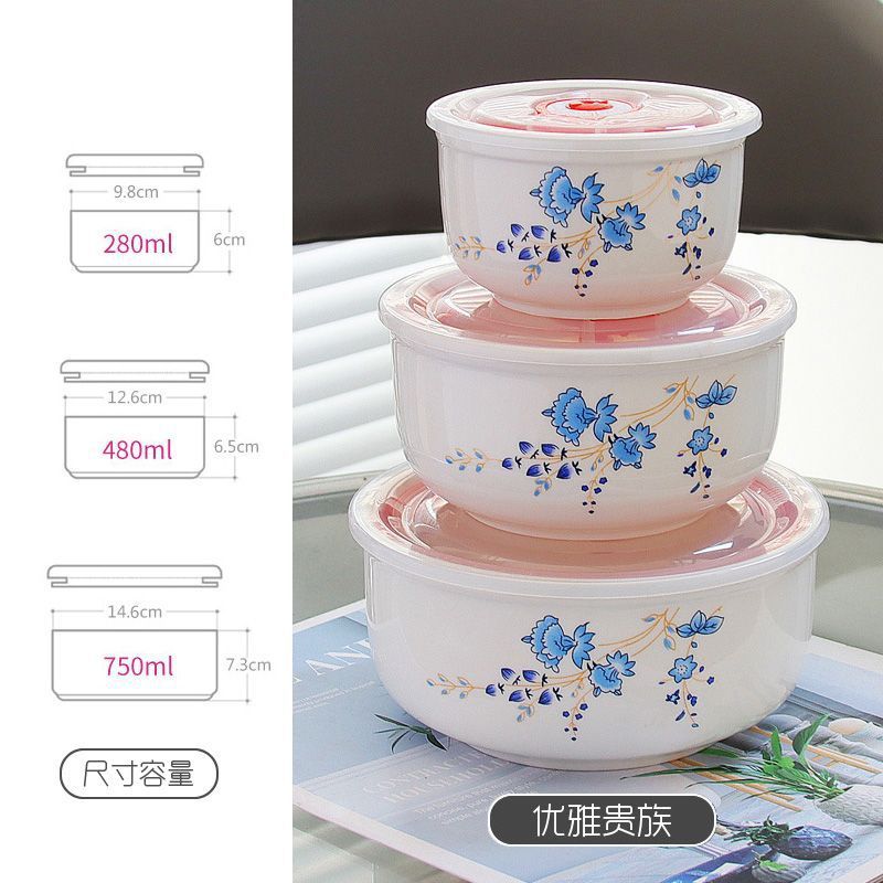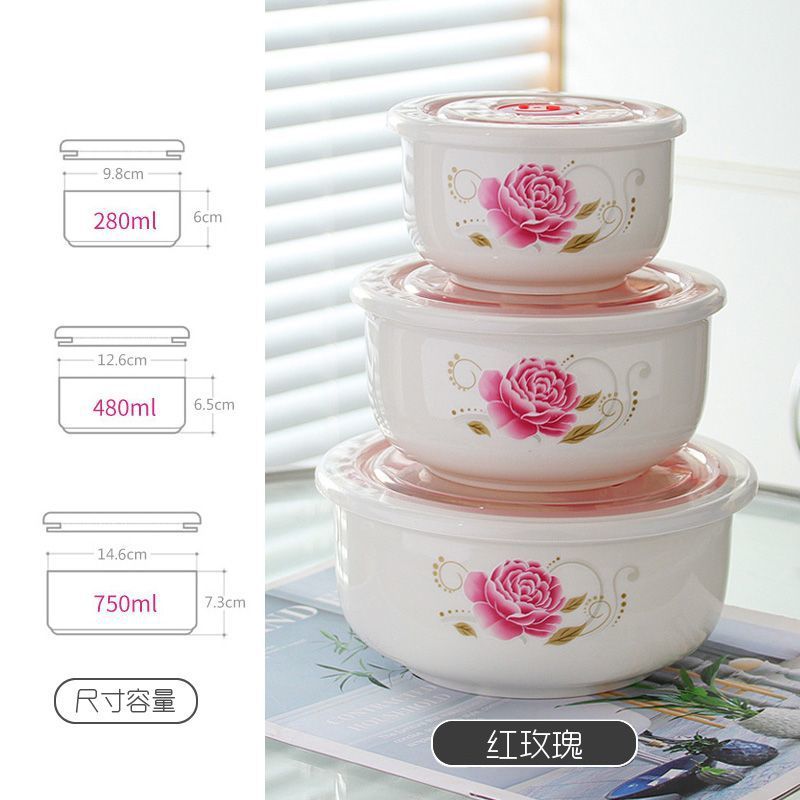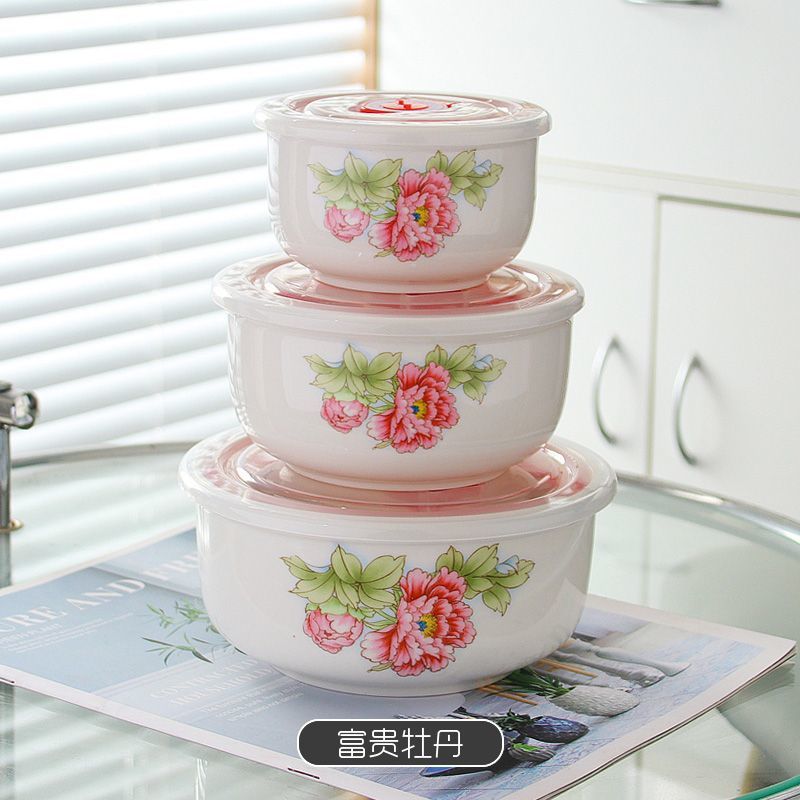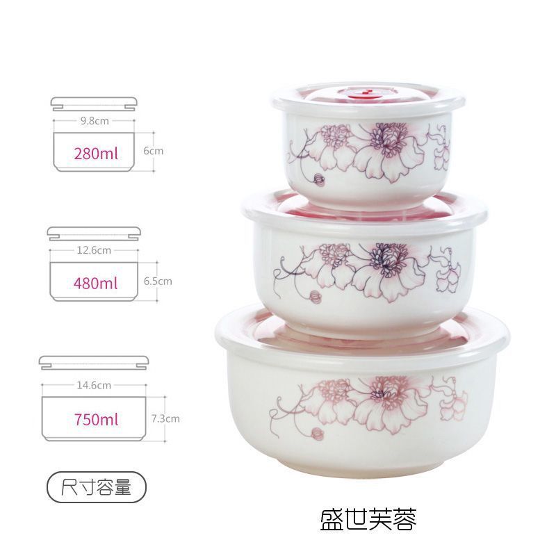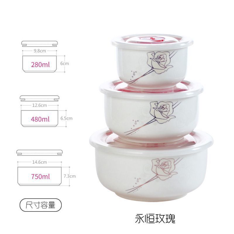 전자레인지 가열용 특수그릇 세트, 뚜껑이 있는 세라믹그릇, 대형 신선보관그릇, 가정용 밀봉박스, 밥이 포함된 3종세트