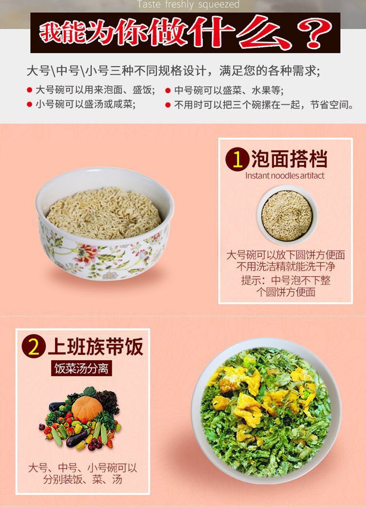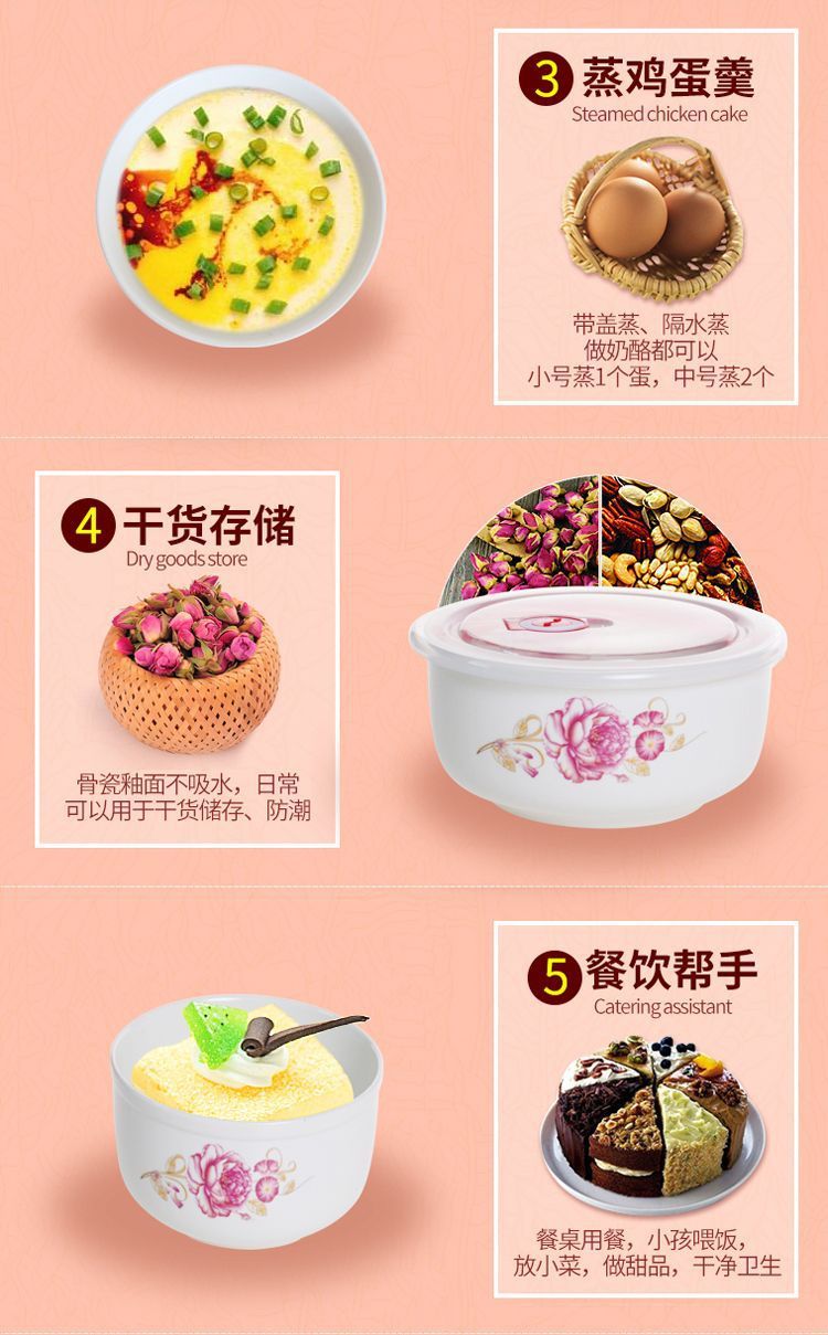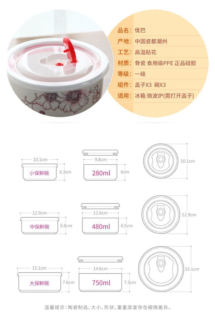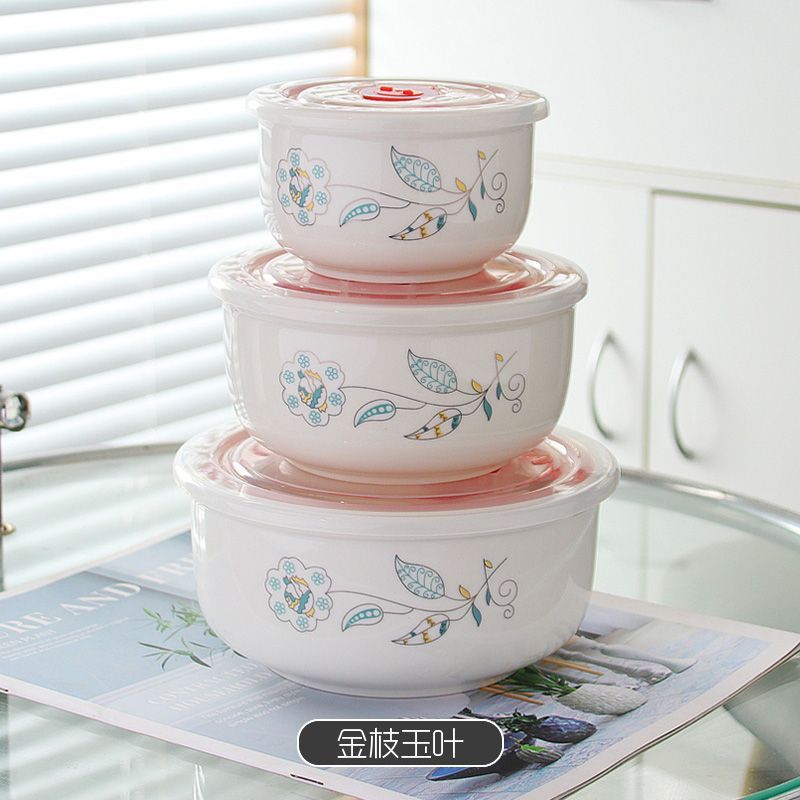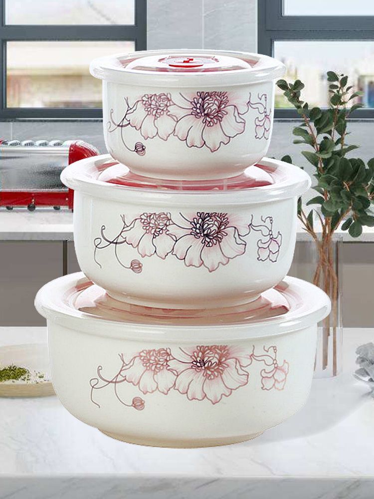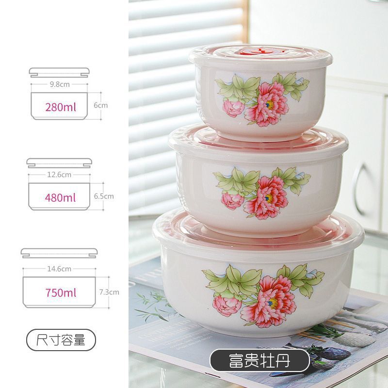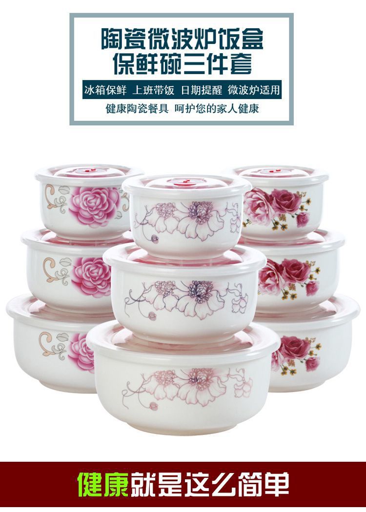 전자레인지 가열용 특수그릇 세트, 뚜껑이 있는 세라믹그릇, 대형 신선보관그릇, 가정용 밀봉박스, 밥이 포함된 3종세트스토어 가기