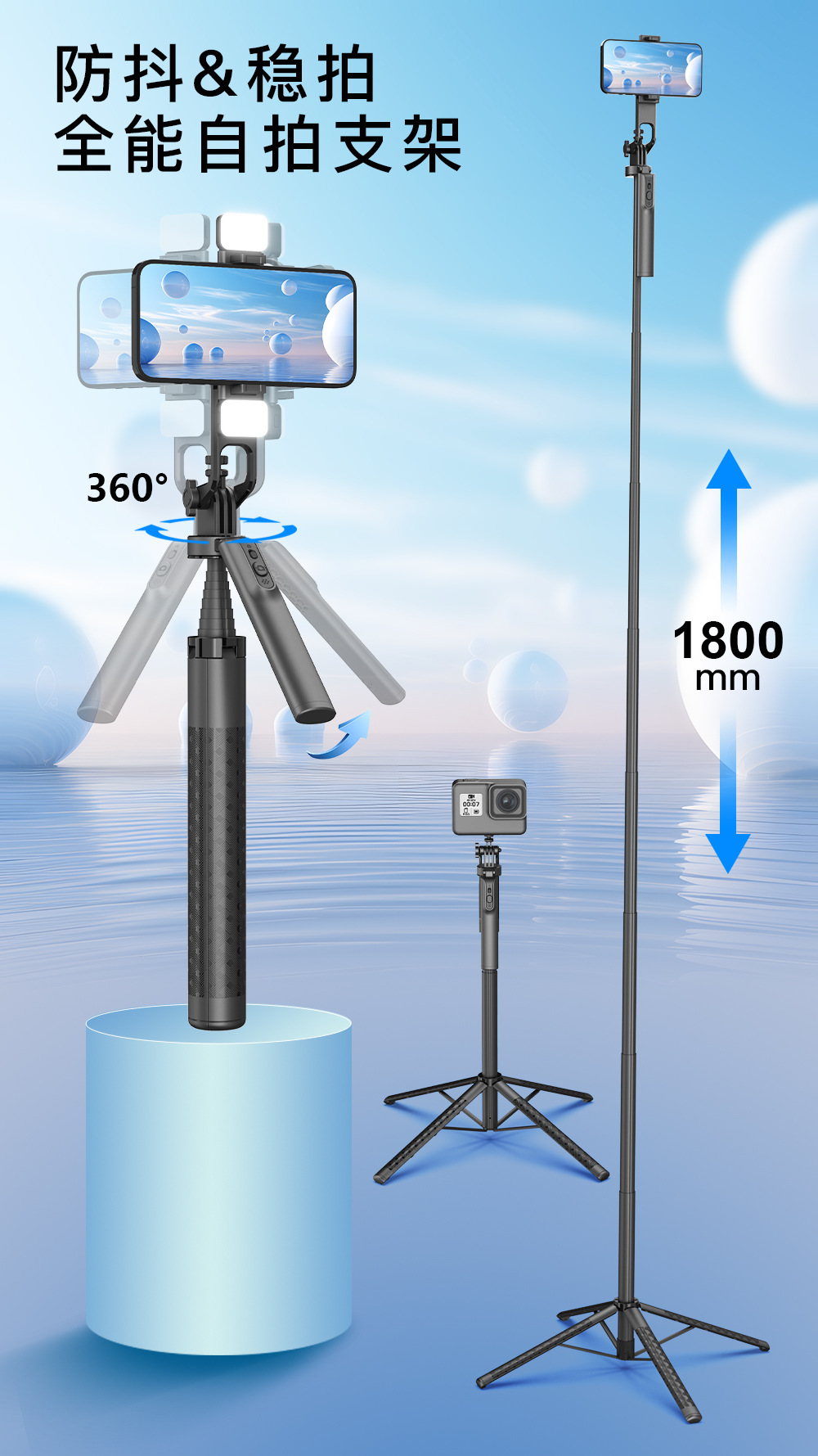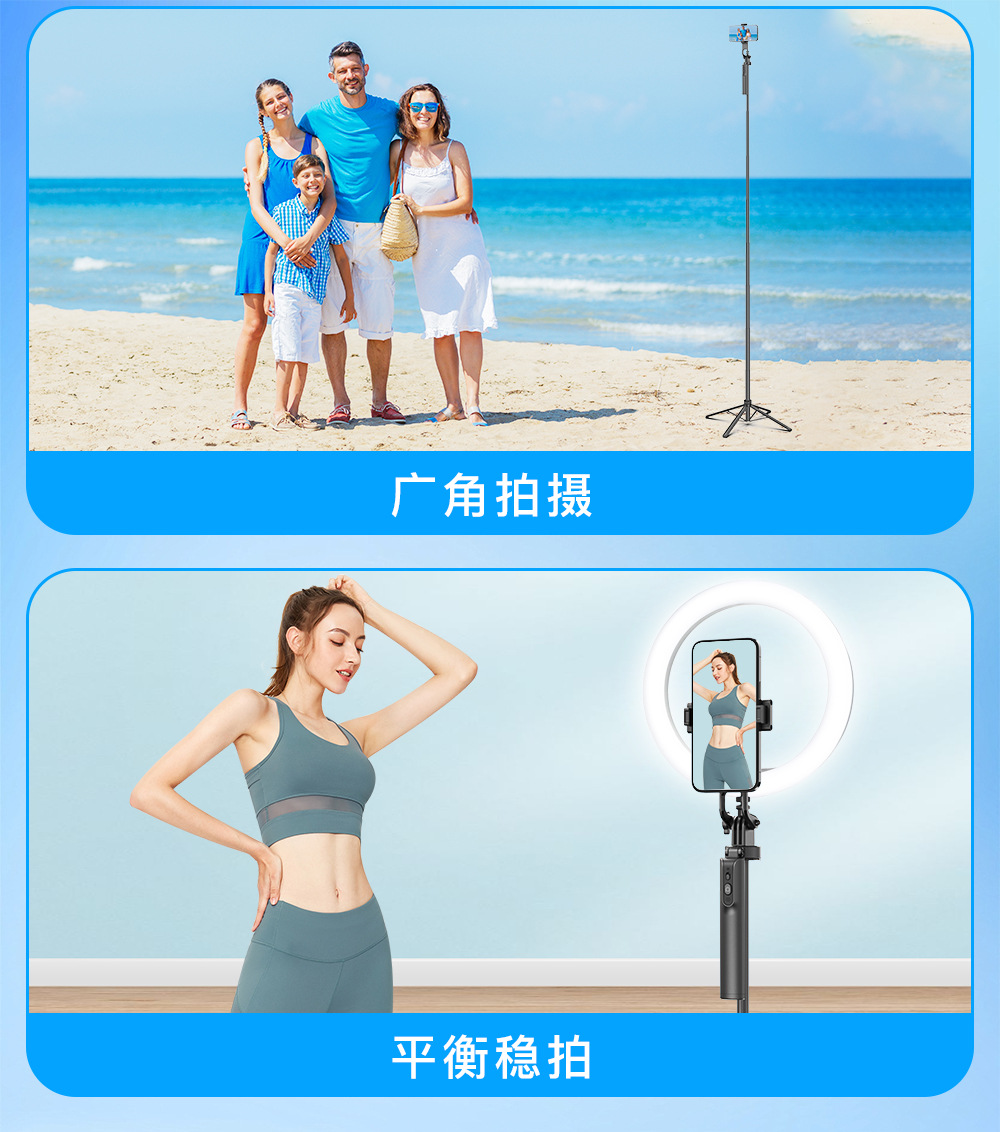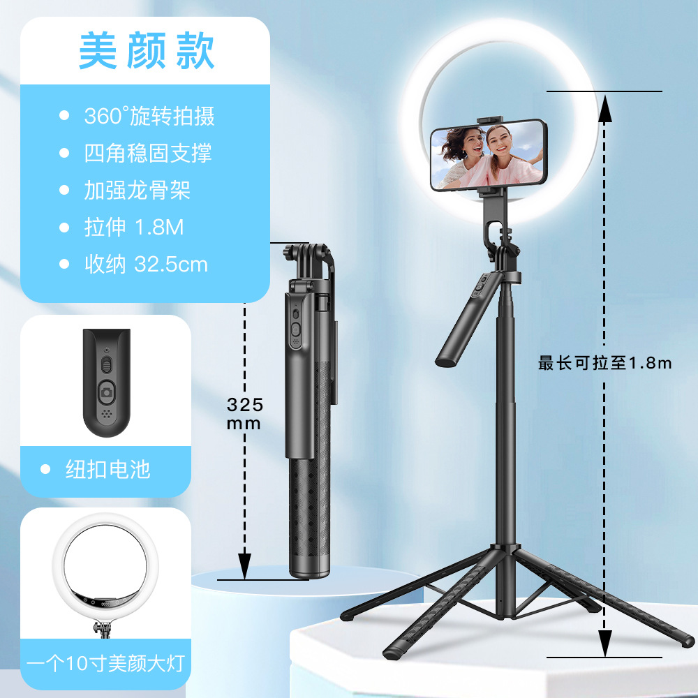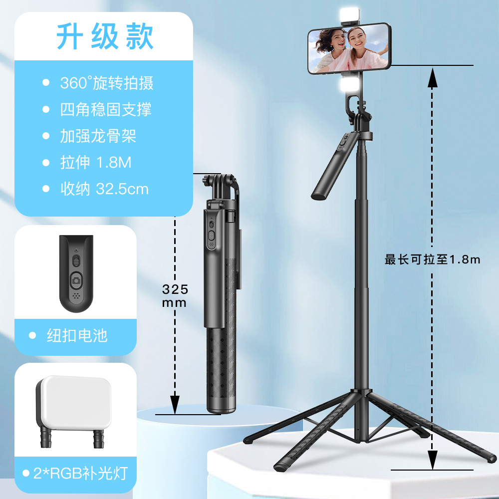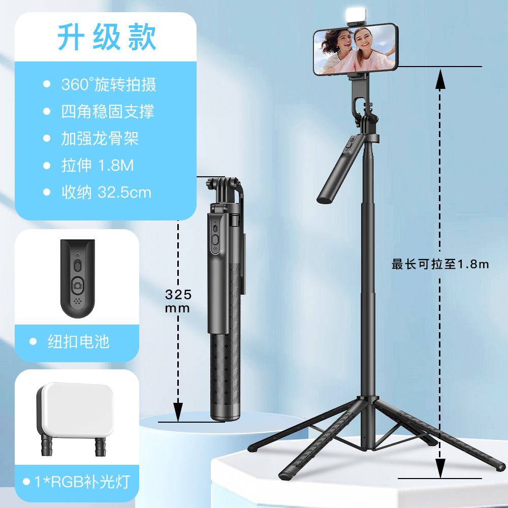블루투스 셀카봉 1.8M 4각 스탠드 알루미늄 합금 핸드헬드 360도 회전 라이브 방송 사진 촬영 스탠드 휴대용 조명