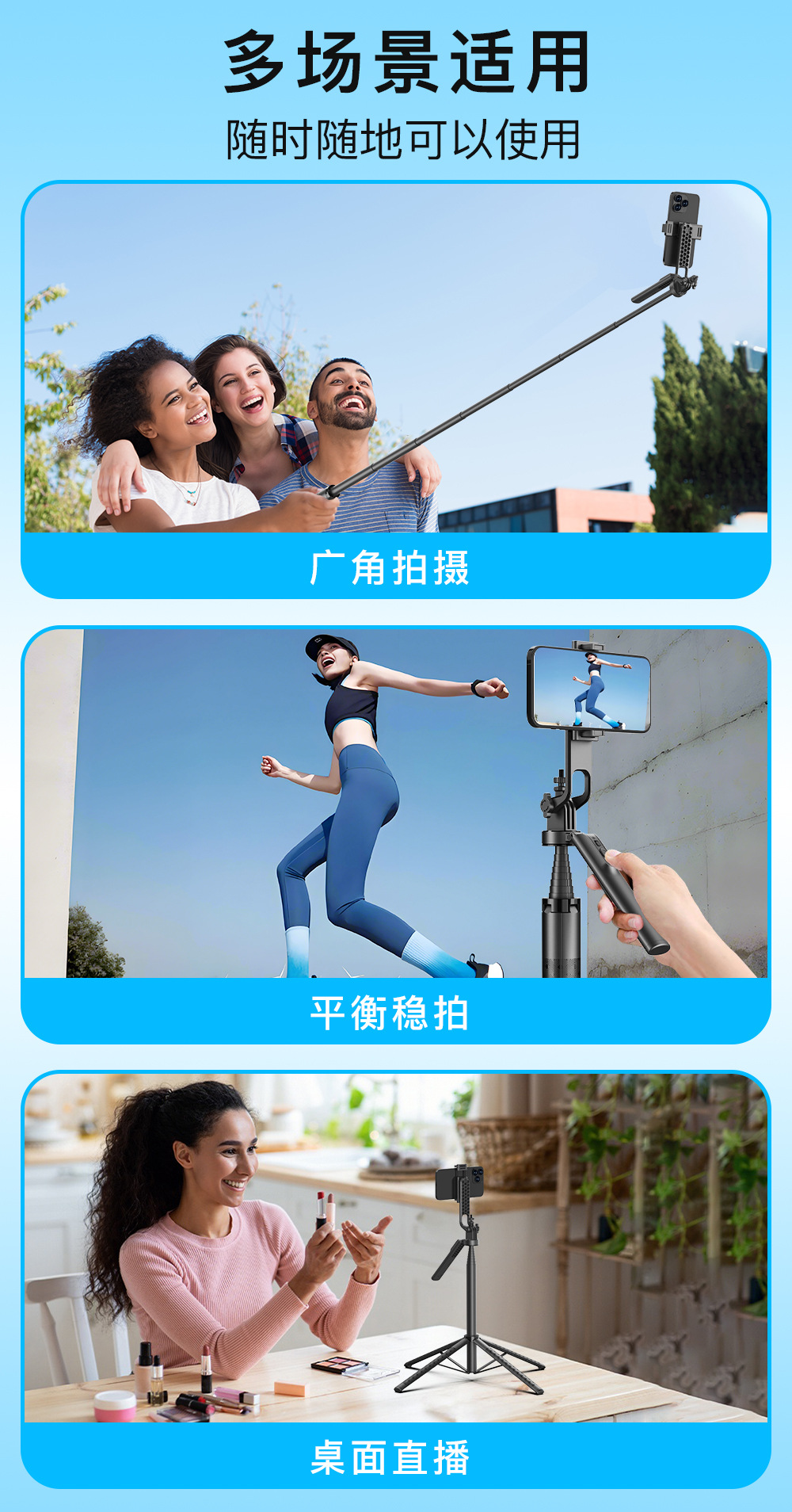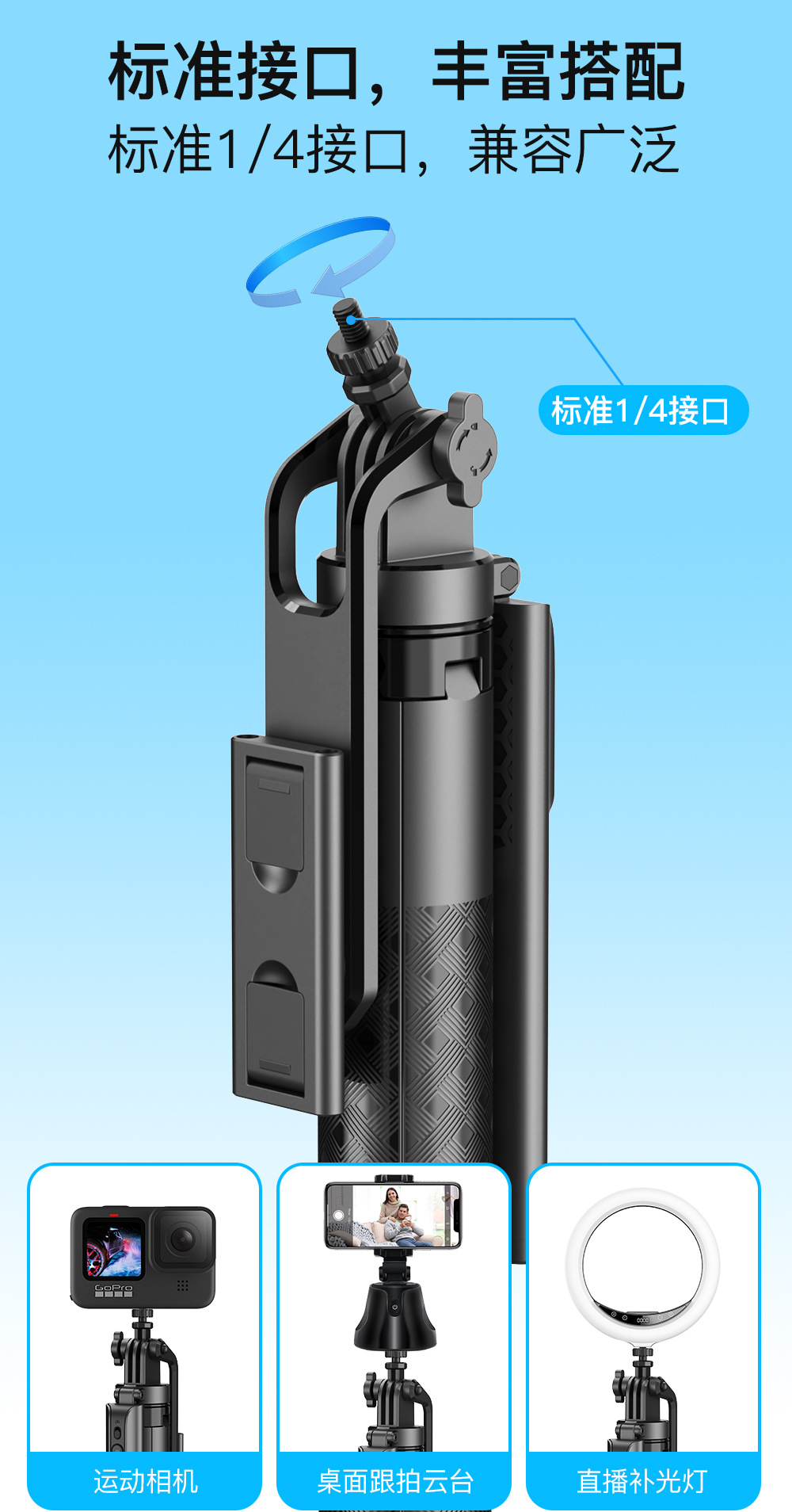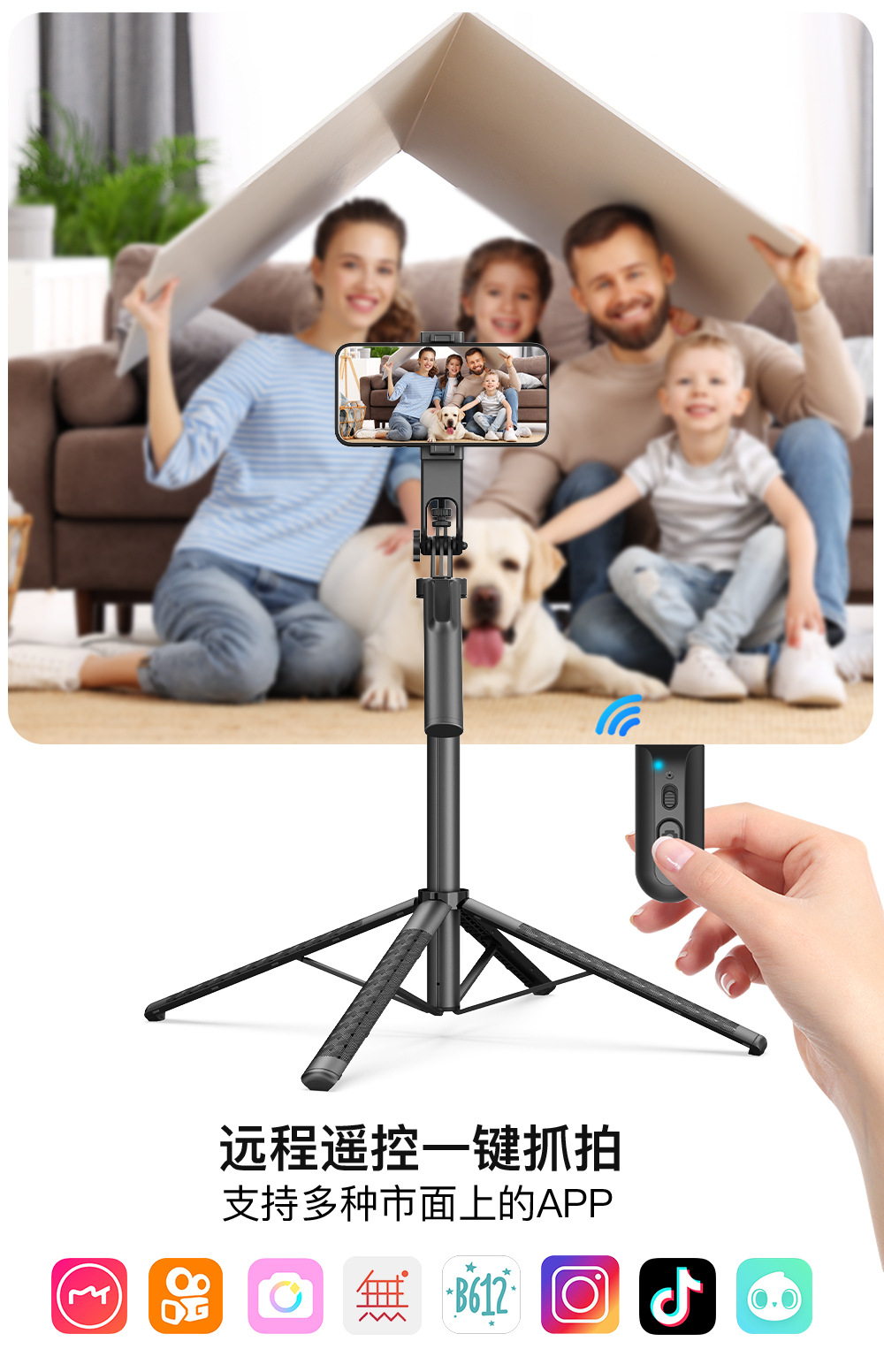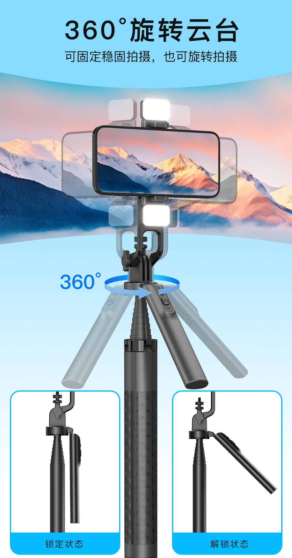 블루투스 셀카봉 1.8M 4각 스탠드 알루미늄 합금 핸드헬드 360도 회전 라이브 방송 사진 촬영 스탠드 휴대용 조명