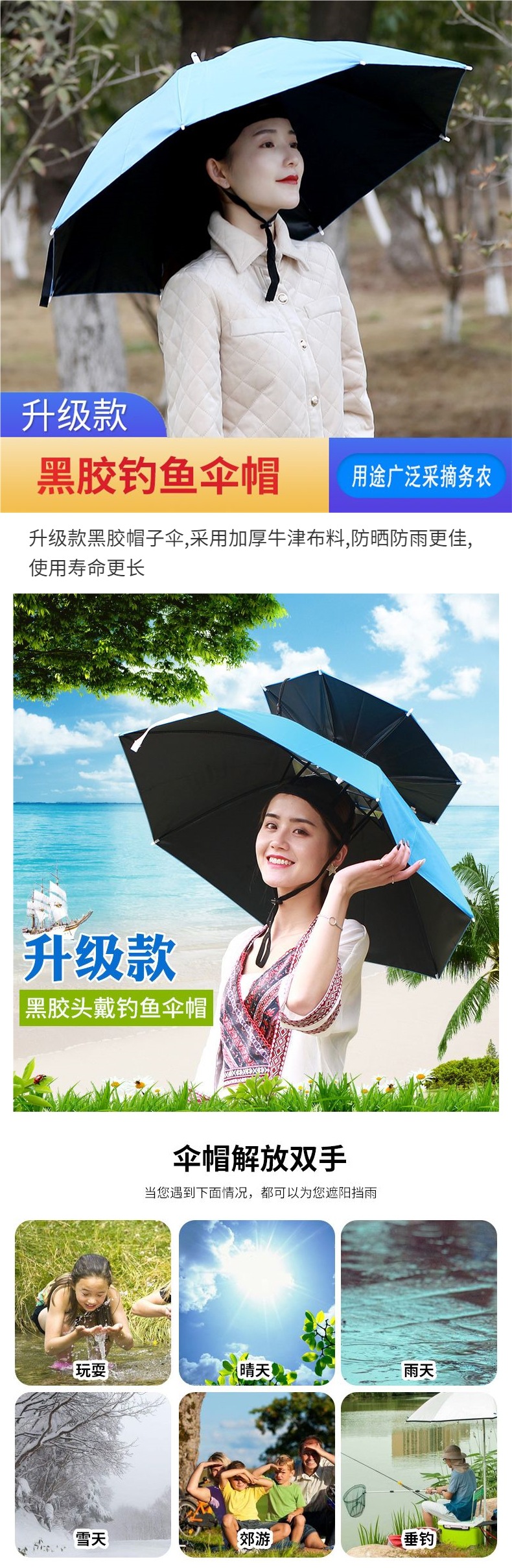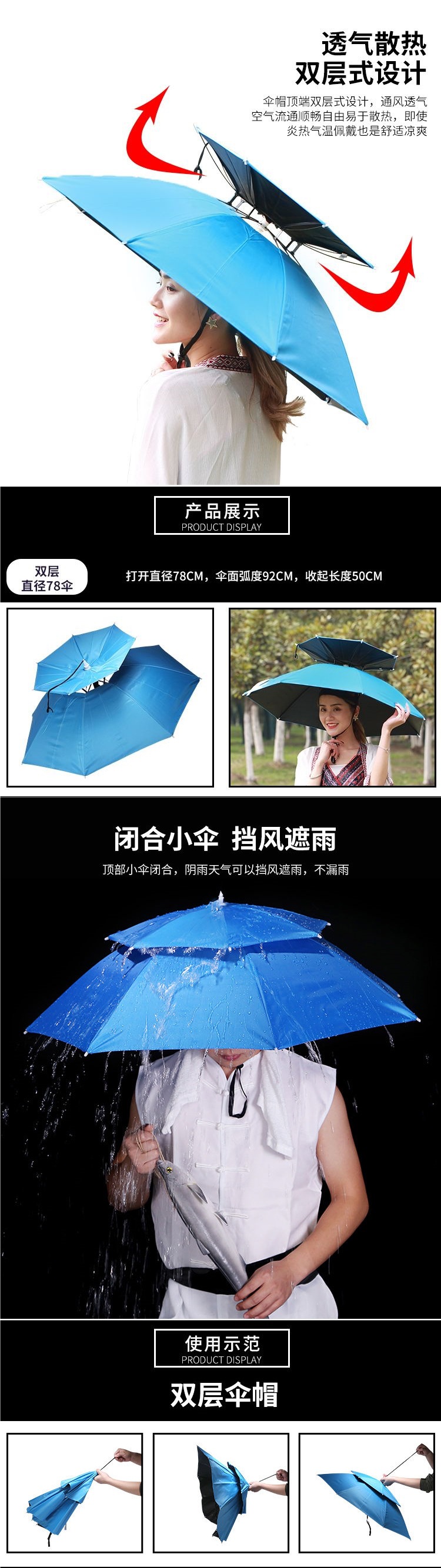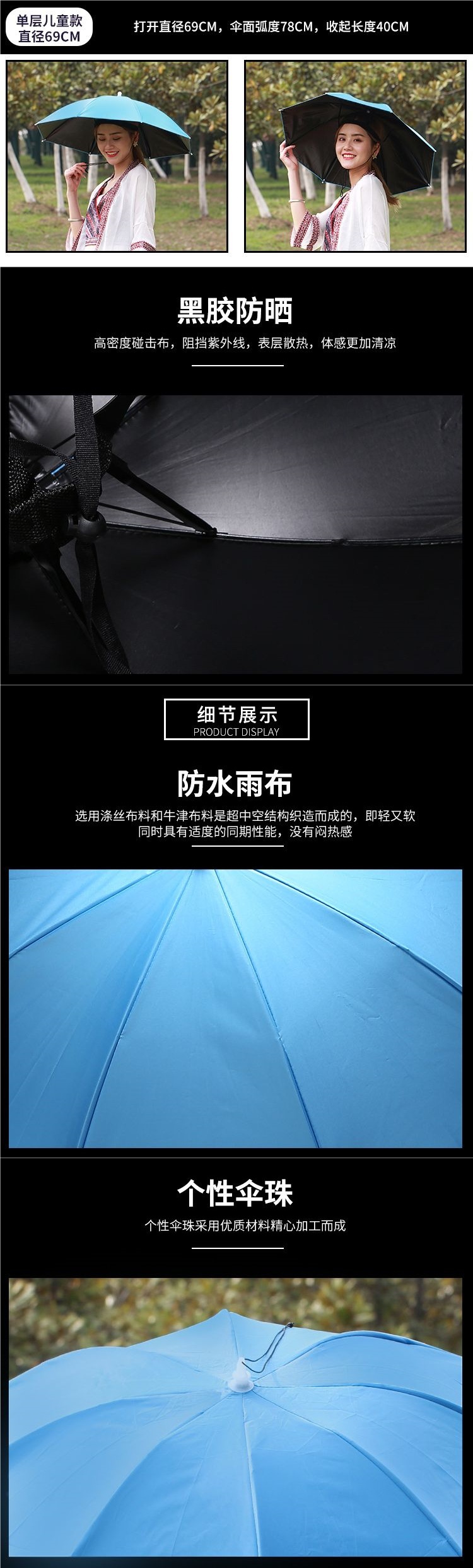 자외선 차단, 자외선 차단, 비 방지, 모자가 달린 헤드 장착형 파라솔, 태양 우산, 모자, 낚시 및 차 따기 우산스토어 가기