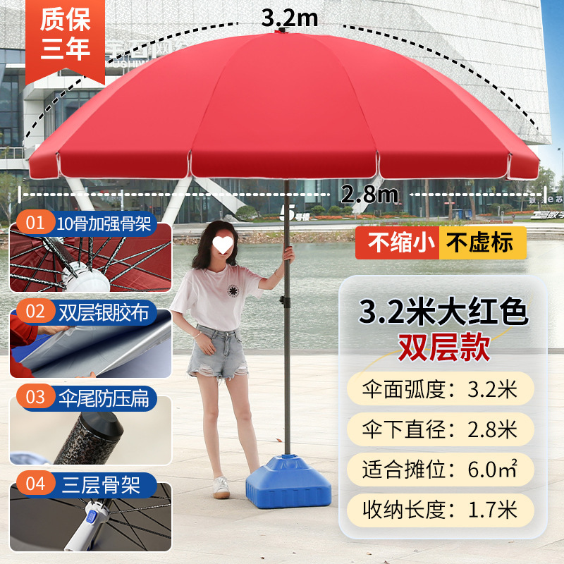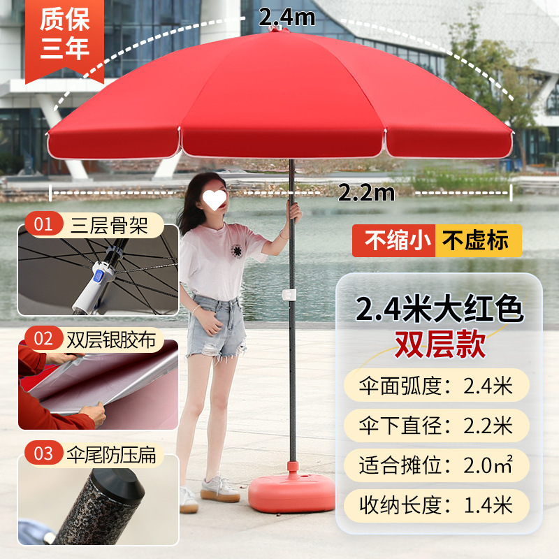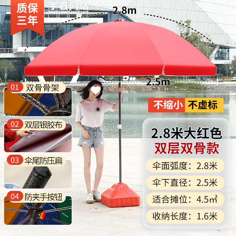 • [이중뼈 16개] 빅레드 2.8m [이중 은색 플라스틱 우산 표면] + 두꺼운 우산봉