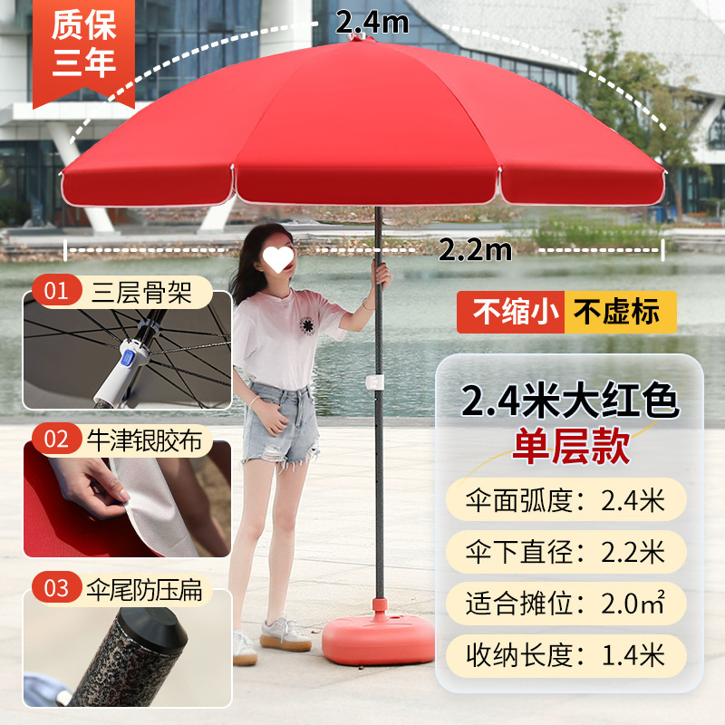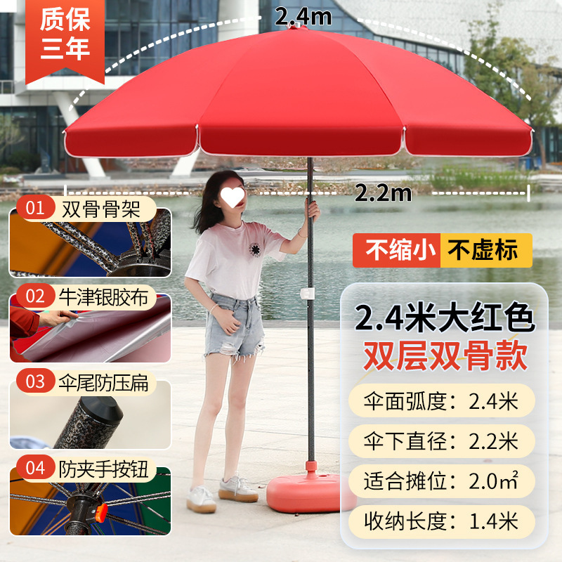 • 다홍 2.4m [이중 은접착 우산 표면] + 두꺼운 우산 기둥