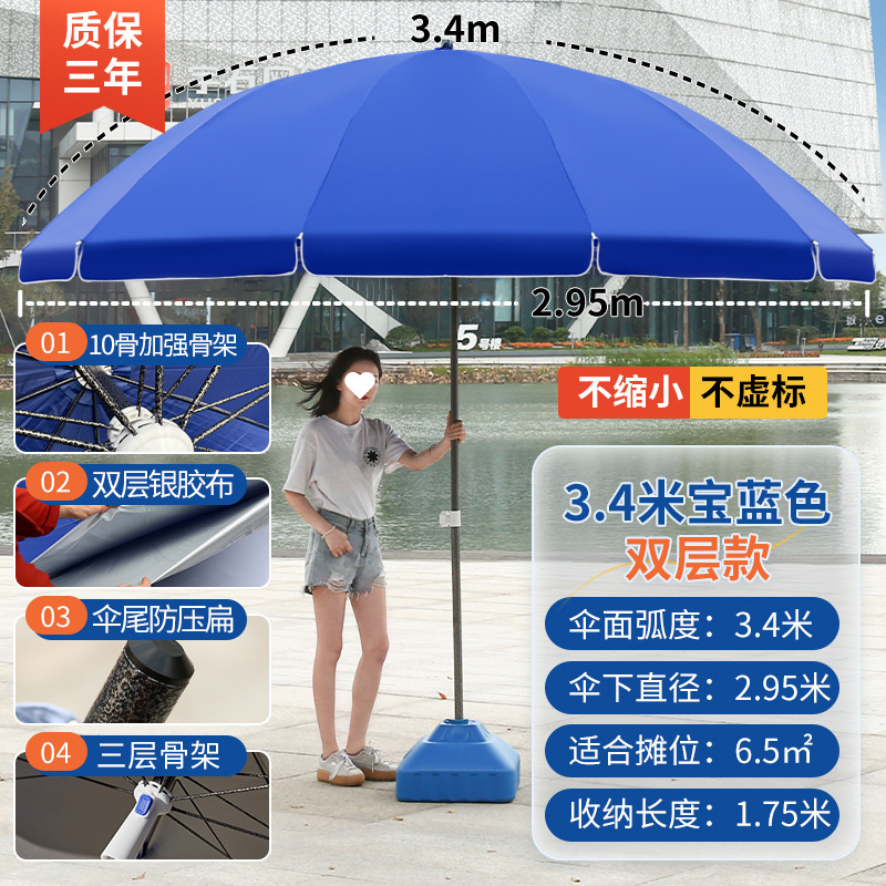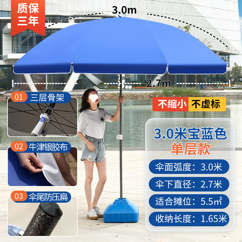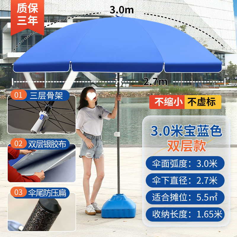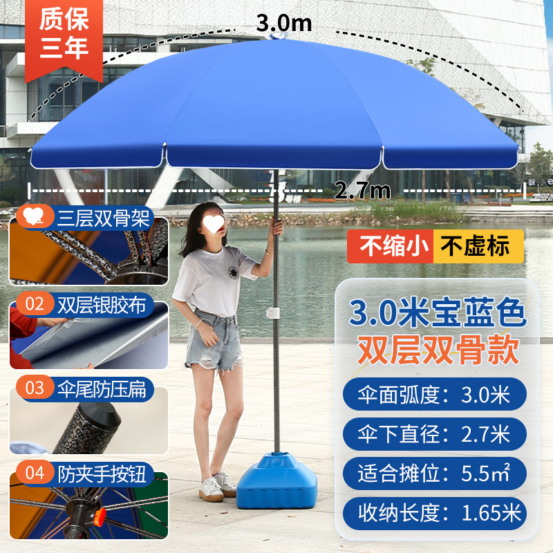 • [이중골 16본] 사파이어 블루 3.0m [이중 은색 플라스틱 우산 표면] + 두꺼운 우산봉