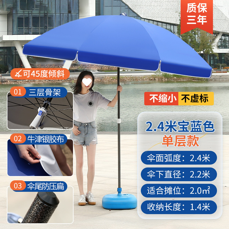 • [조종 가능] 사파이어 블루 2.4m 두꺼운 은색 접착제 + 두꺼운 우산 기둥