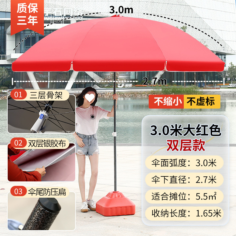 • 다홍 3.0m [이중 은접착 우산 표면] + 두꺼운 우산 기둥