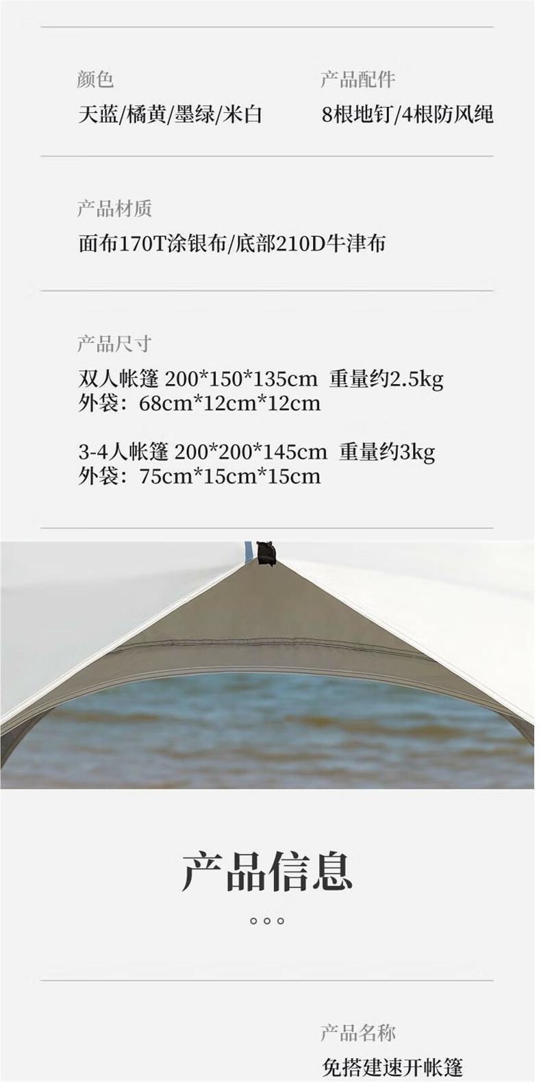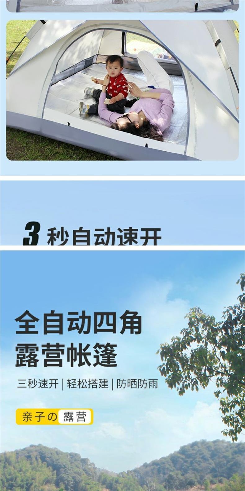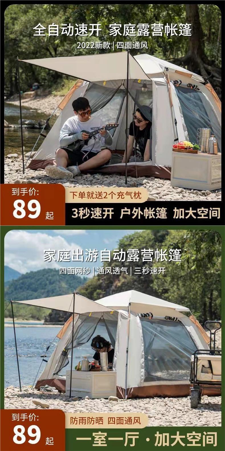 텐트 야외 캠핑 완전 자동 유압 미색 방수 차양 피크닉 여행 등산 두꺼운 더블 레이어 가족 스타일스토어 가기