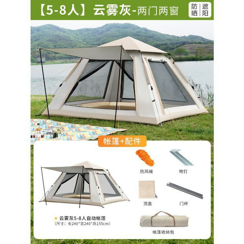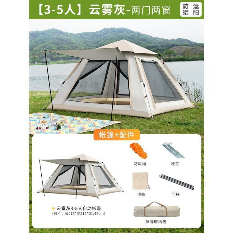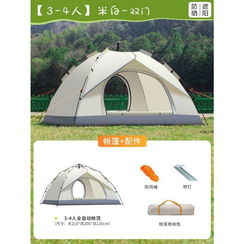 텐트 야외 캠핑 완전 자동 유압 미색 방수 차양 피크닉 여행 등산 두꺼운 더블 레이어 가족 스타일