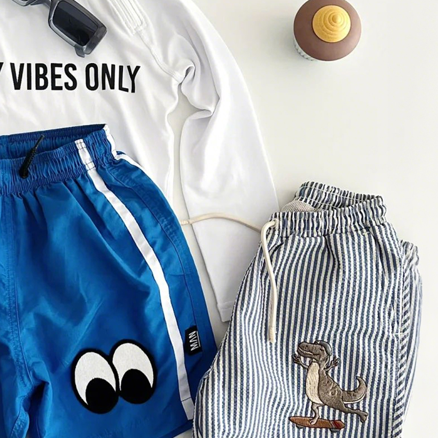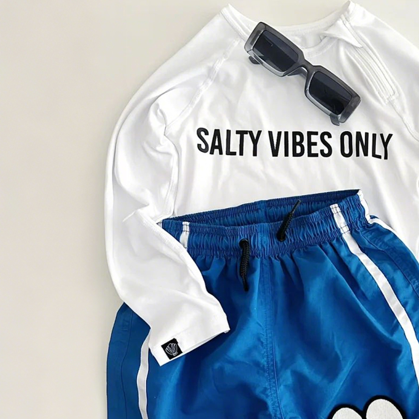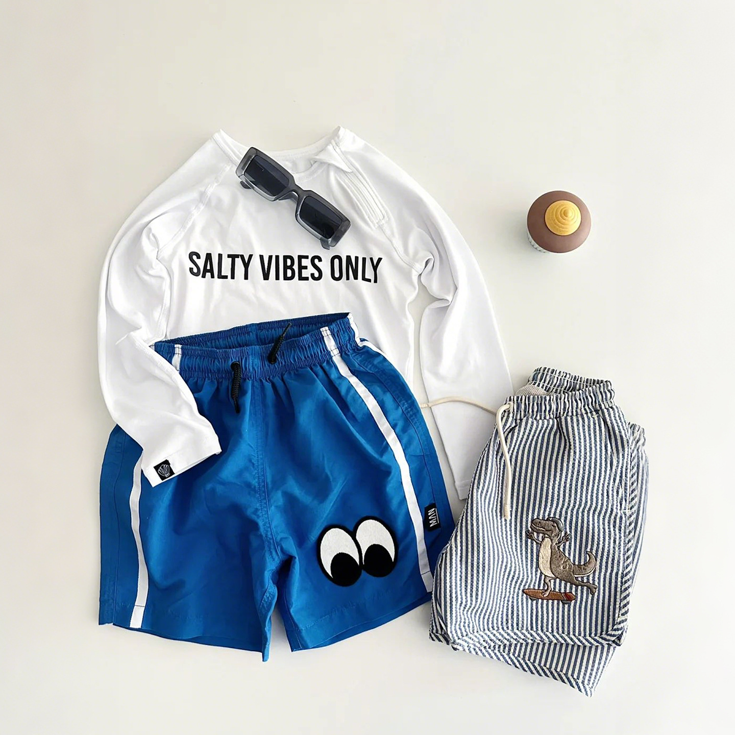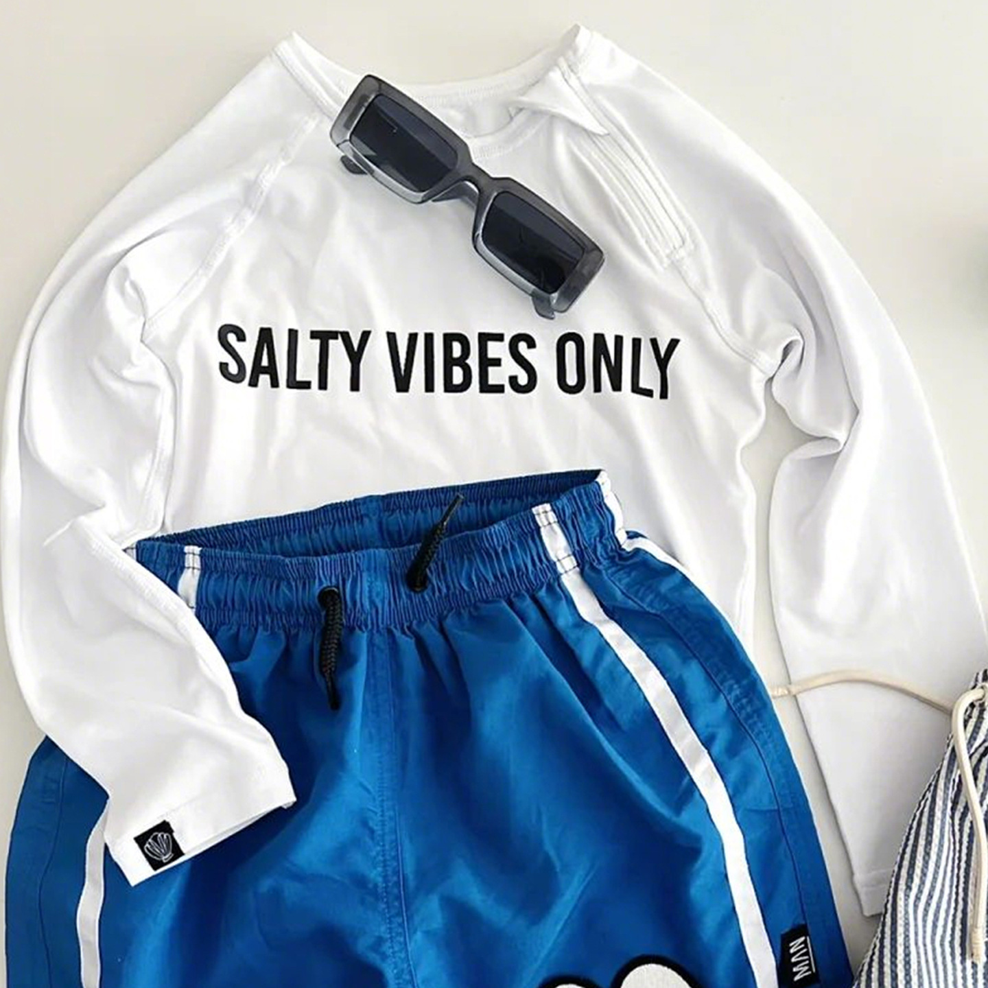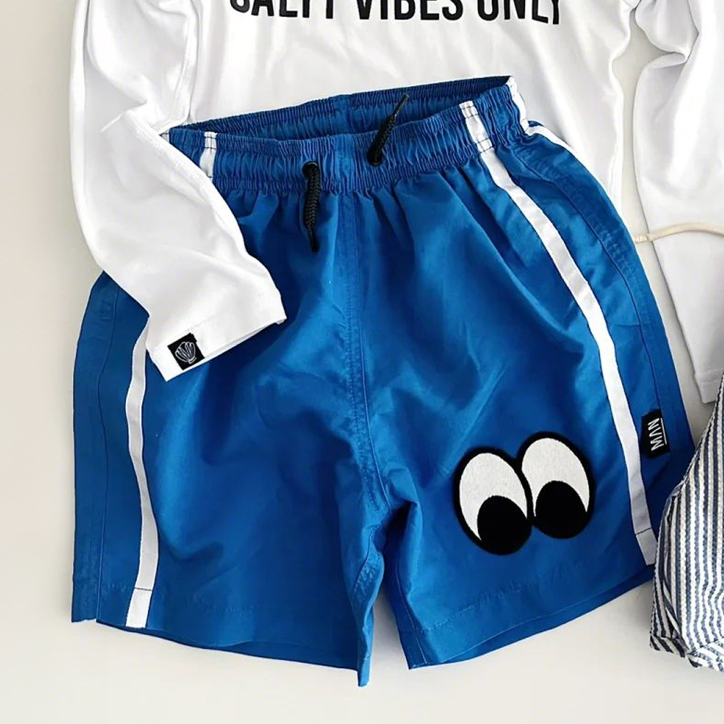 • 흰색 수영복 + 파란색 수영 트렁크 세트