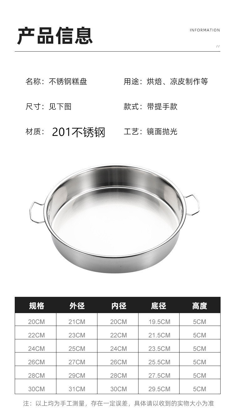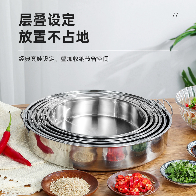 Hanhuang 비자성 직선 스팀 냉피 두꺼운 스테인레스 스틸 골통 접시 소시지 파우더 접시 케이크 접시 국수 원형 접시스토어 가기