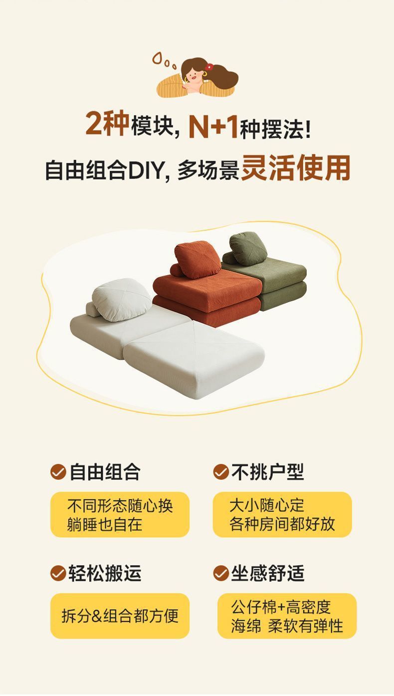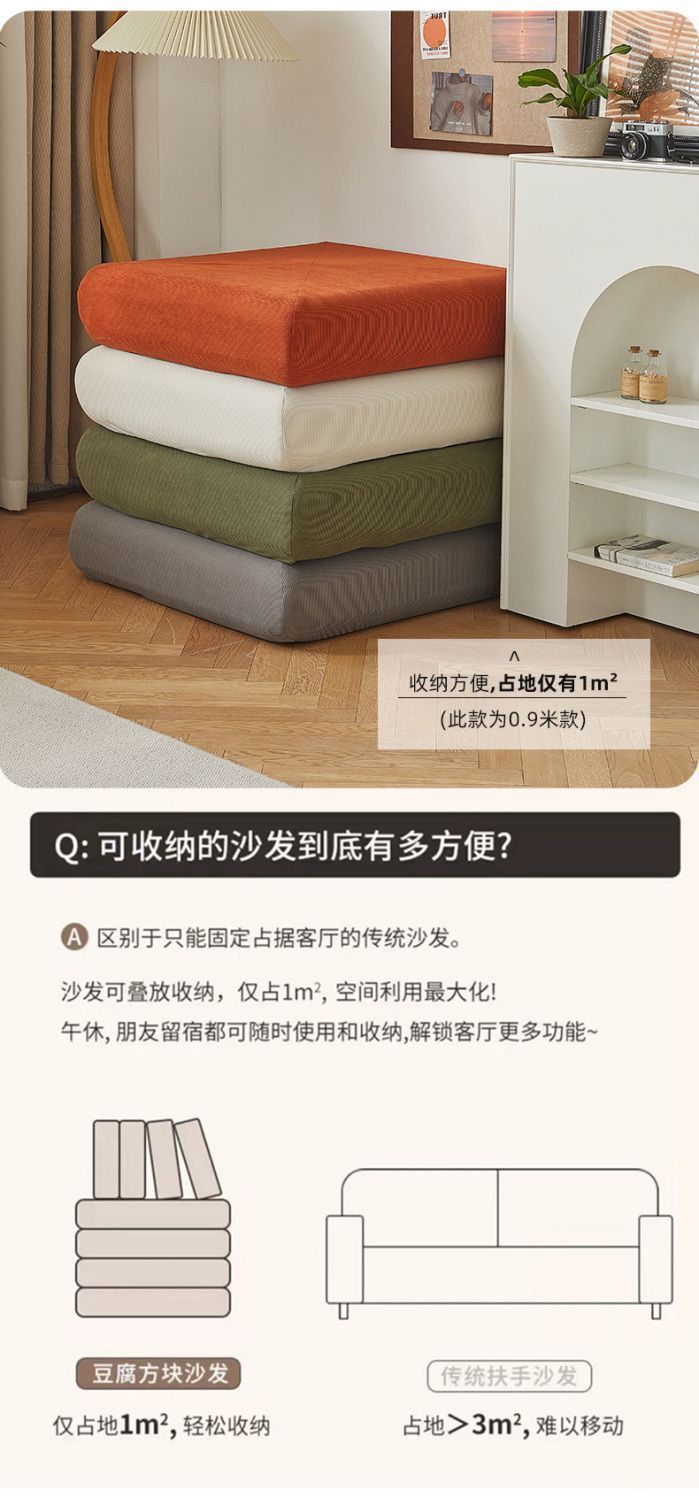 작은 아파트 거실 접이식 및 세탁 가능한 다다미 이중 목적 게으른 소파 두부 블록 인터넷 연예인 싱글 소파 침대스토어 가기