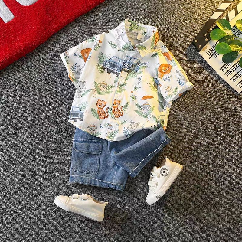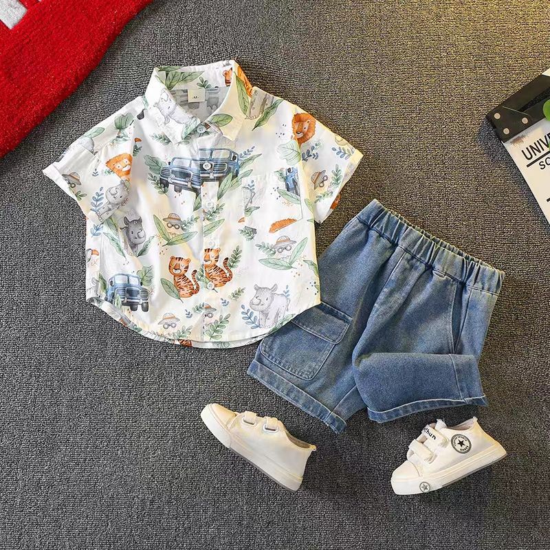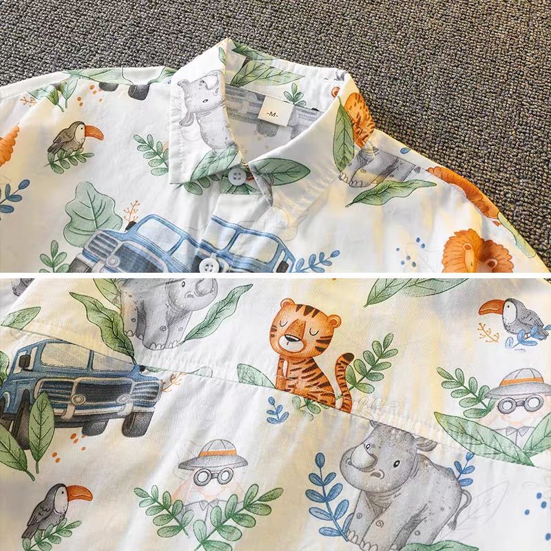 아동용 반팔 셔츠 2025 새로운 여름 휴가 해변 스타일 소년의 멋진 셔츠 아기 얇은 양복스토어 가기