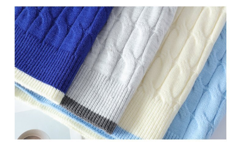 국경 간 남성 가을, 겨울 새로운 풀오버 라운드 넥 컬러 블록 짠 긴팔 스웨터 남성 따뜻한 캐주얼 스웨터스토어 가기