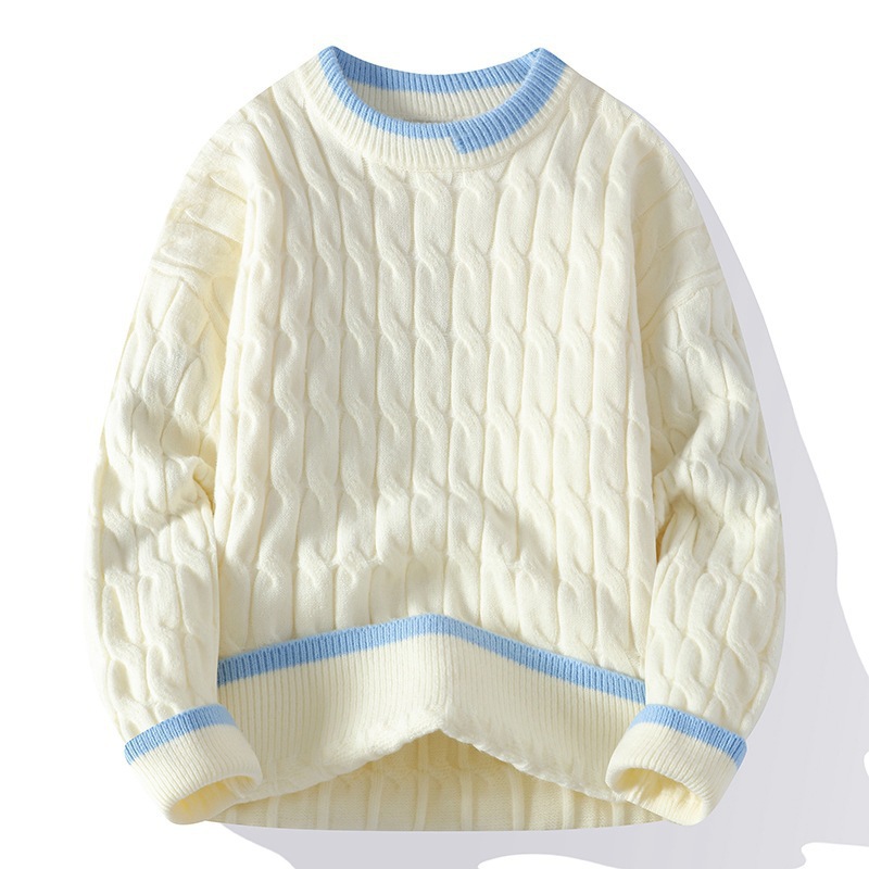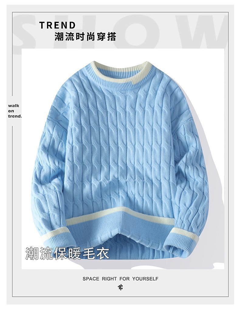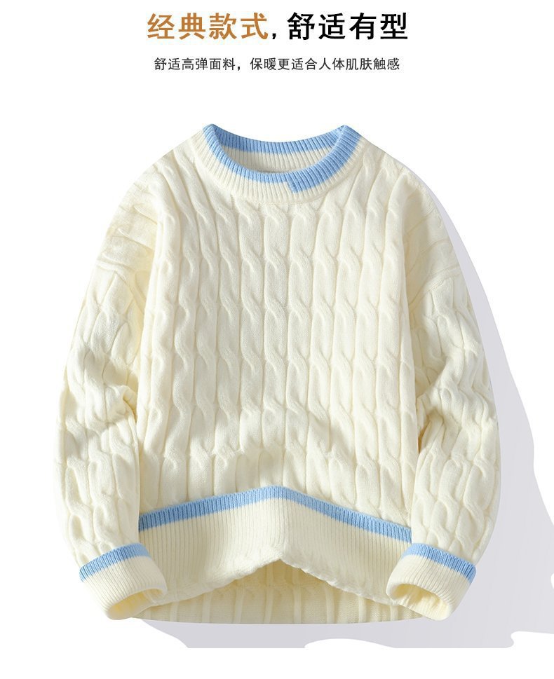 국경 간 남성 가을, 겨울 새로운 풀오버 라운드 넥 컬러 블록 짠 긴팔 스웨터 남성 따뜻한 캐주얼 스웨터