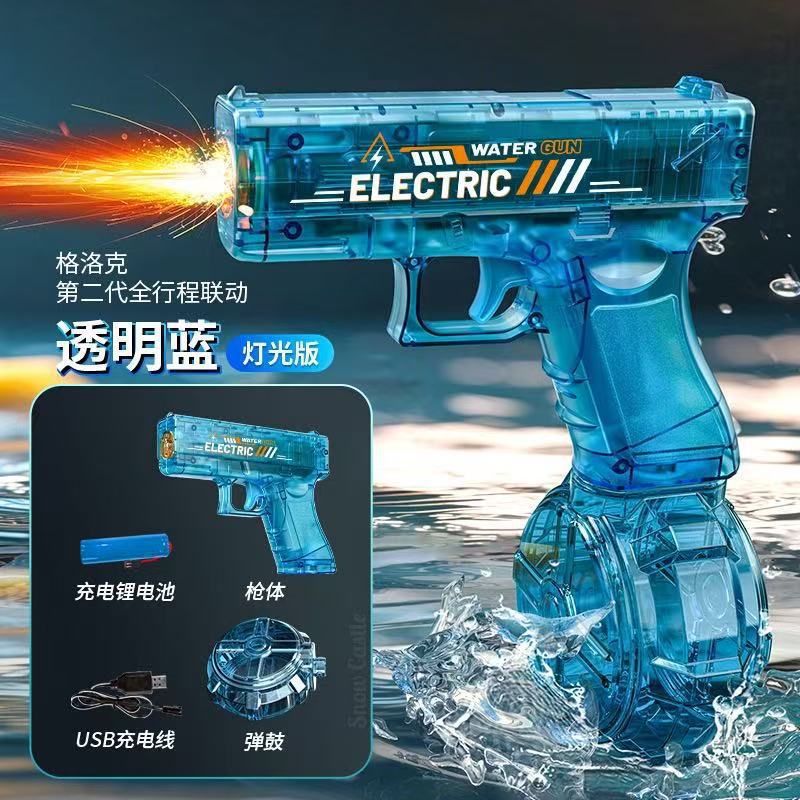 2세대 글록 불꽃 방지 소음기 플래시 2025 새로운 어린이 전기 물총 장난감 자동 연속 발사스토어 가기
