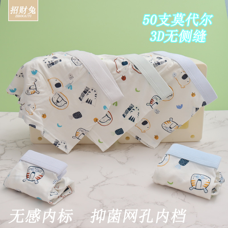남아용 아동 속옷, 50수 모달면 3D 뼈없는 사각 학생용 속옷, 3-12세용 항균 속옷