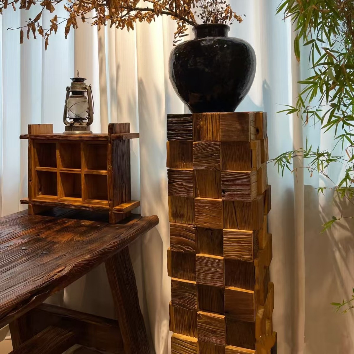 오래된 느릅나무 단일 도어 수납 캐비닛 나무 격자 무늬 와비사비 스타일 복고풍 장식 캐비닛 복고풍 단단한 나무 바닥 캐비닛스토어 가기