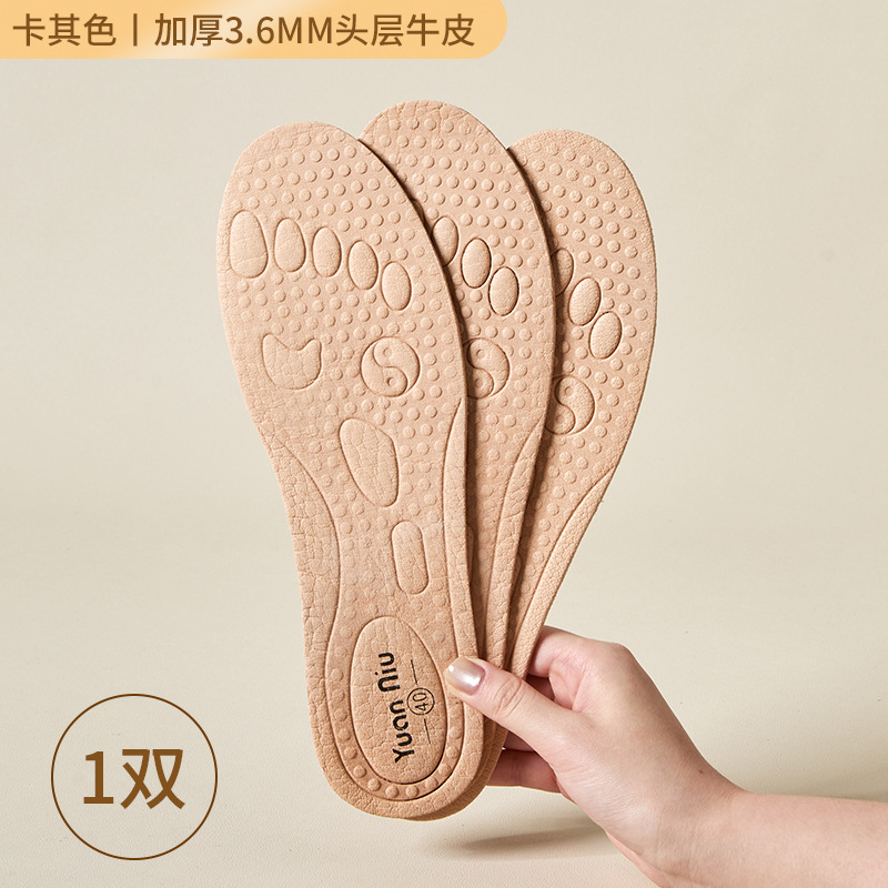 남성과 여성을 위한 두껍고 내마모성이 뛰어난 천연 소가죽 깔창, 땀 흡수성, 탈취제, 통기성, 마사지 발바닥, 편안한 스포츠 깔창