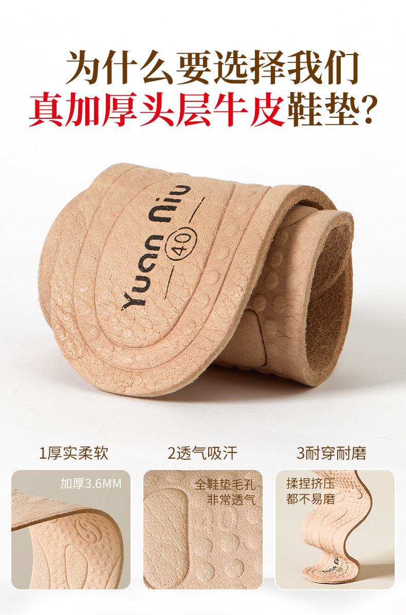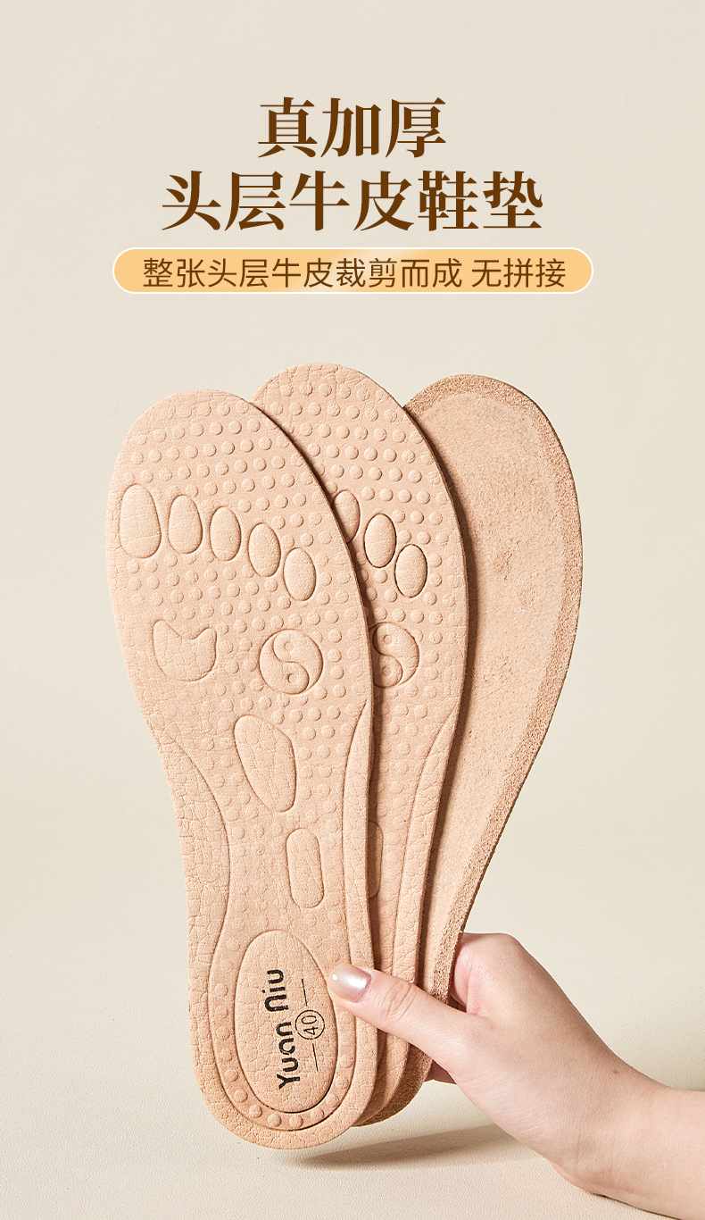 남성과 여성을 위한 두껍고 내마모성이 뛰어난 천연 소가죽 깔창, 땀 흡수성, 탈취제, 통기성, 마사지 발바닥, 편안한 스포츠 깔창스토어 가기