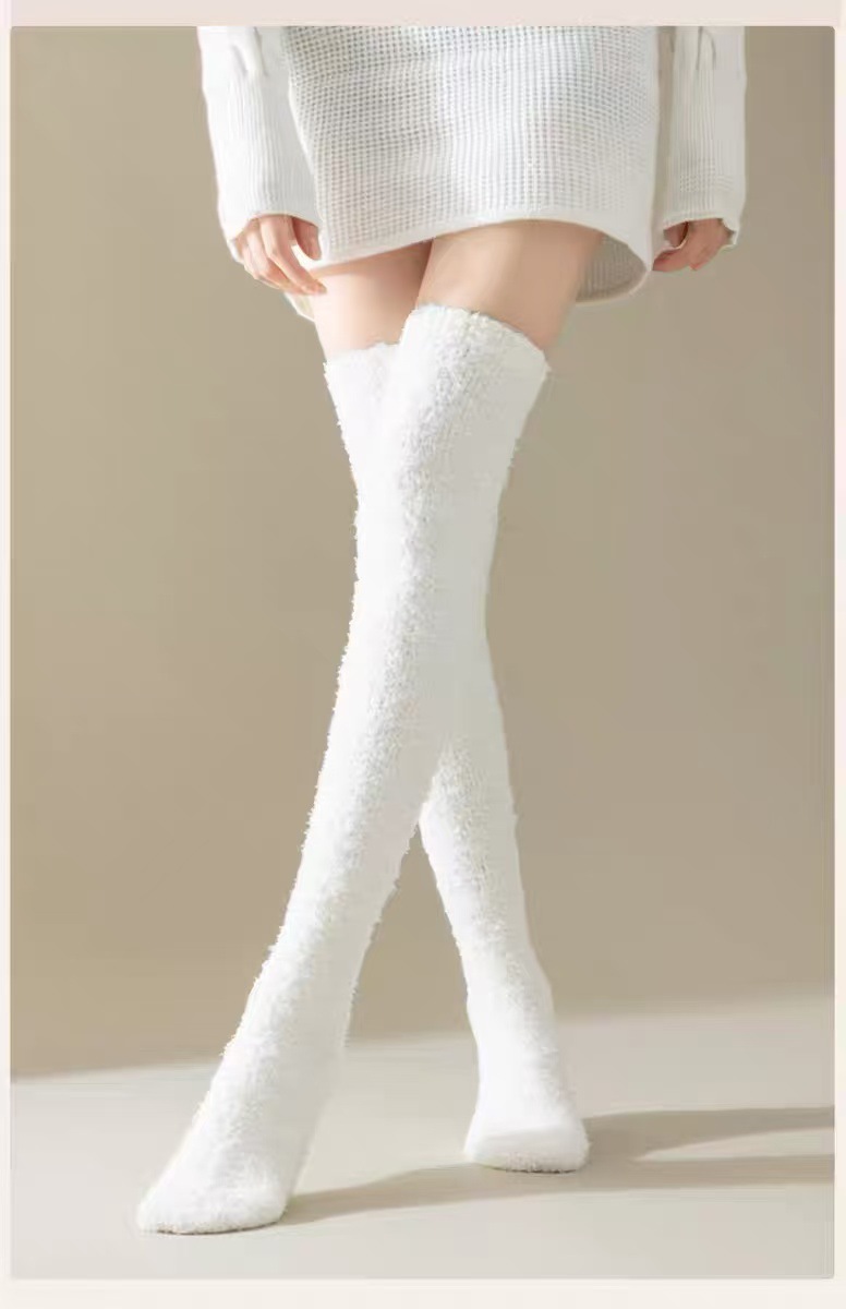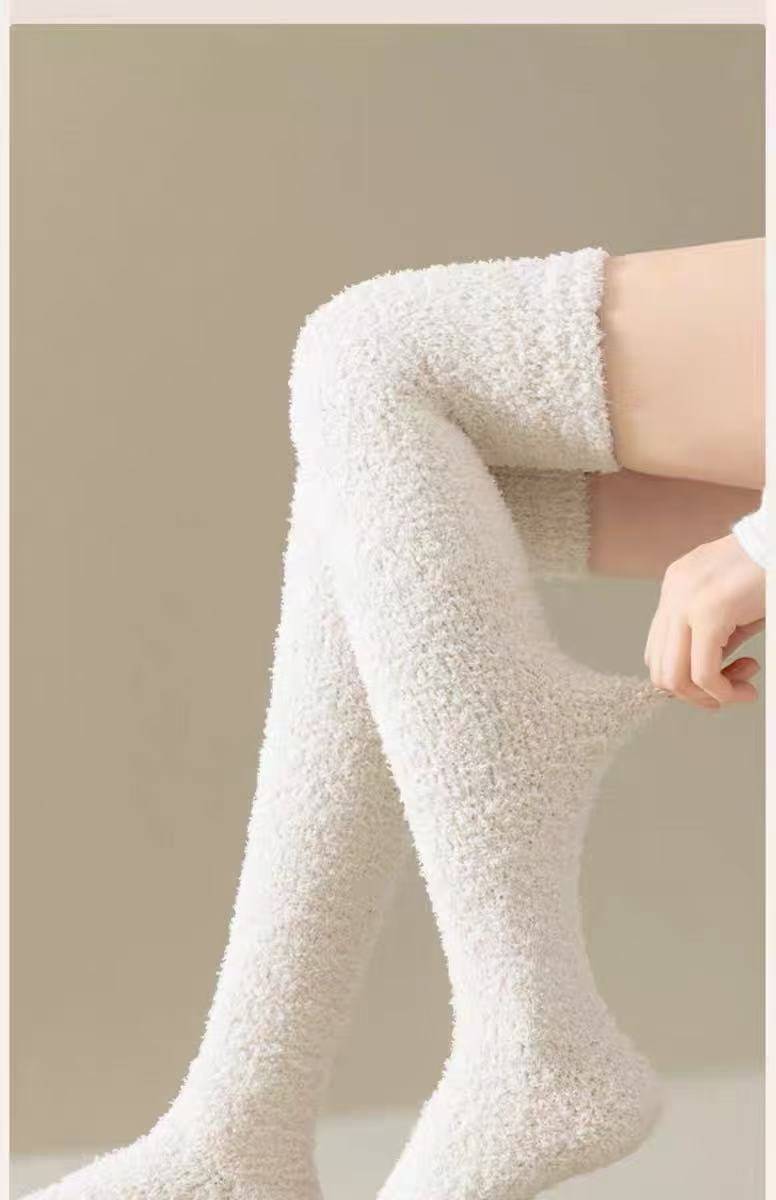 가을 겨울 두껍고 따뜻한 무릎 위 양말, 허벅지 양말, 홈 플러시 수면 양말, 산호 벨벳 스타킹, 무릎 패드
