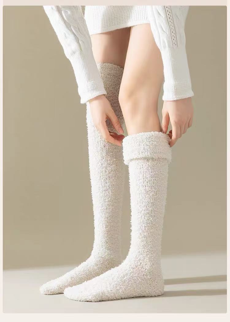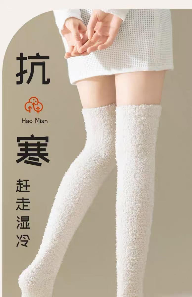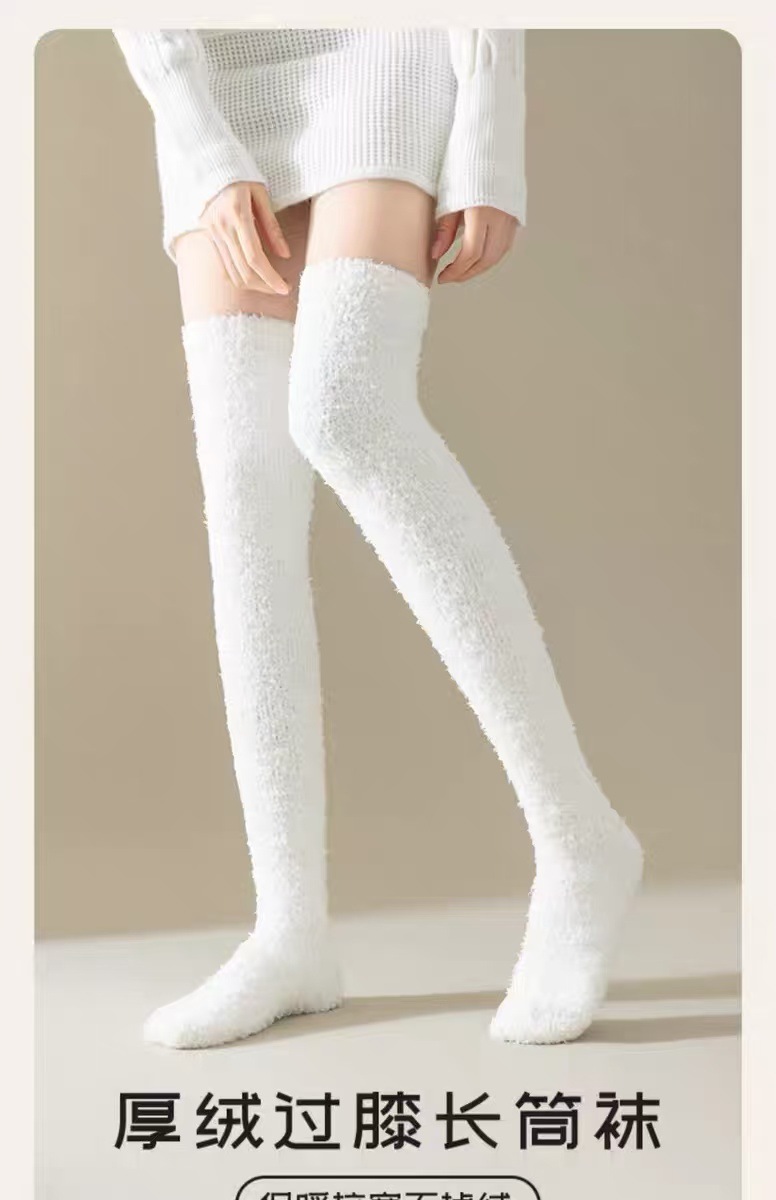 가을 겨울 두껍고 따뜻한 무릎 위 양말, 허벅지 양말, 홈 플러시 수면 양말, 산호 벨벳 스타킹, 무릎 패드스토어 가기