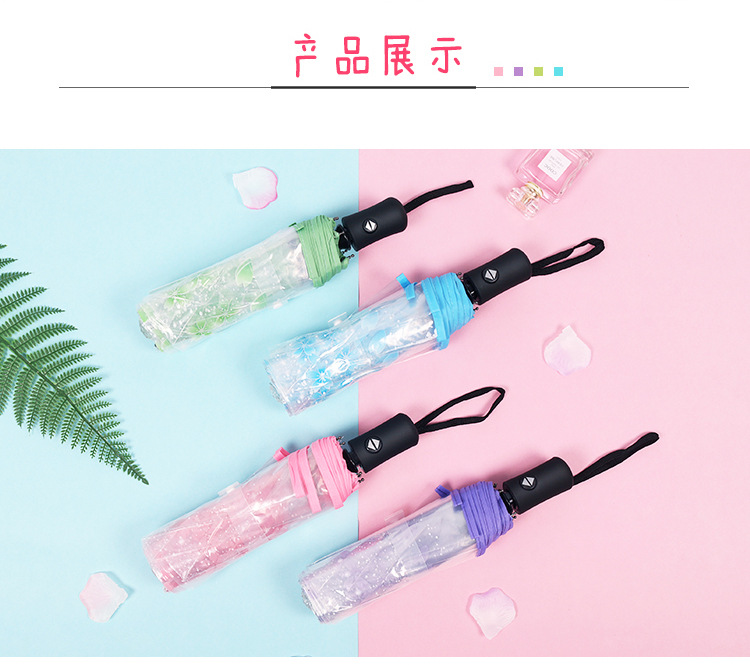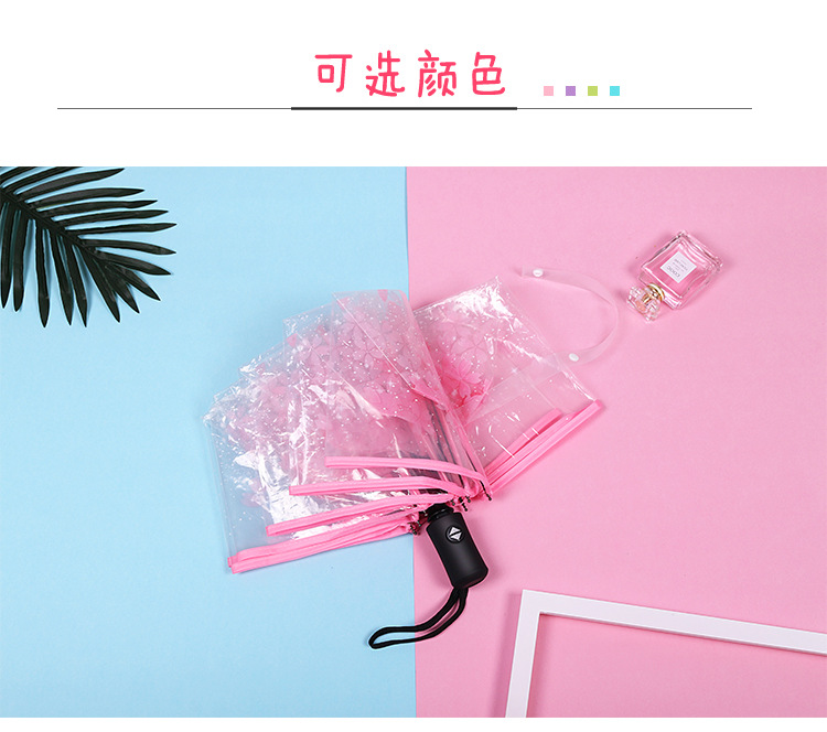 외모가 좋은 소녀들을 위한 완전 자동 접이식 투명 벚꽃 긴 손잡이 우산, ins 스타일, 작은 신선한 숲 스타일 학생 공연