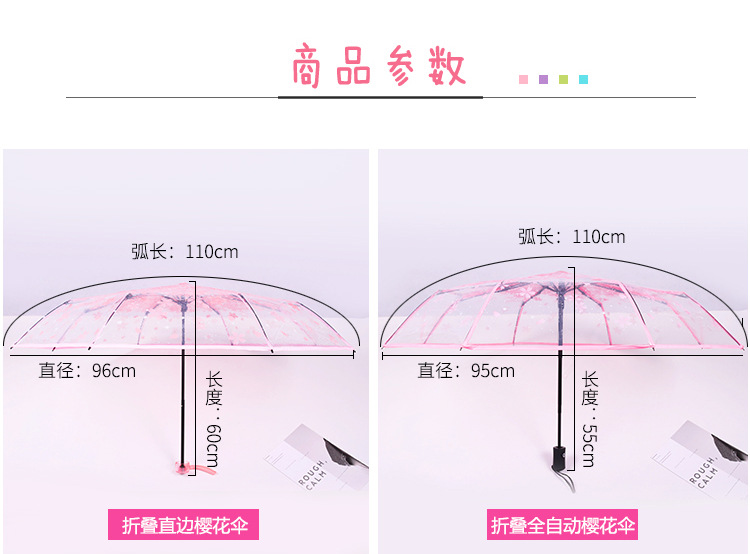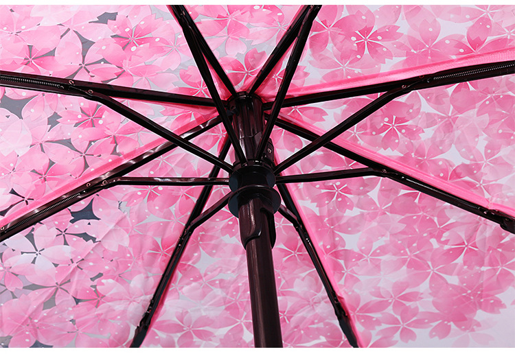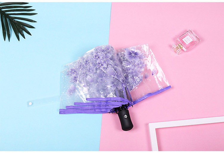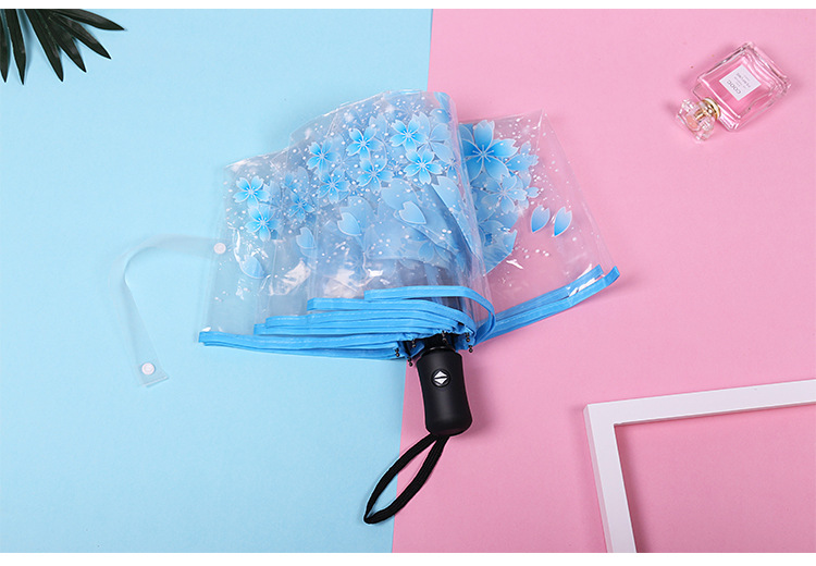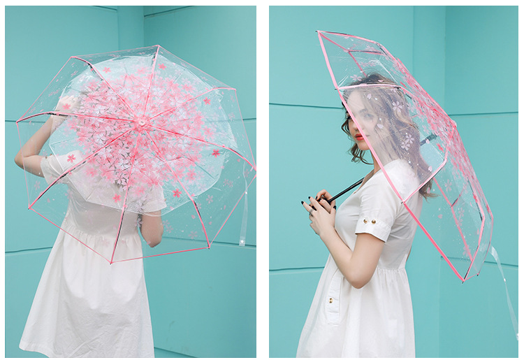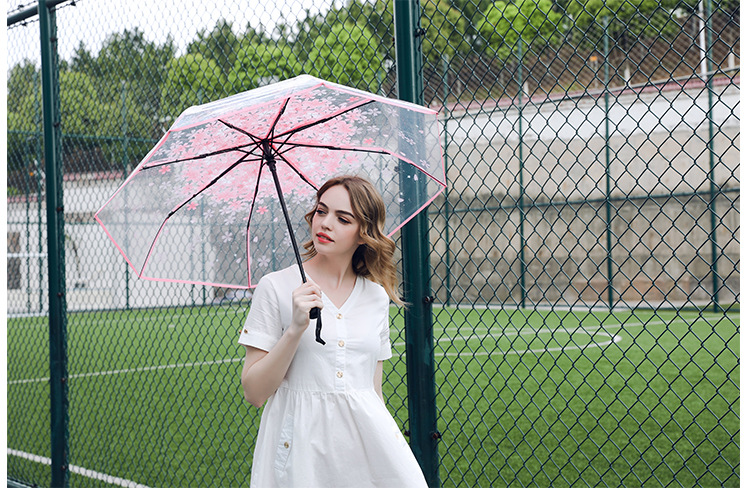 외모가 좋은 소녀들을 위한 완전 자동 접이식 투명 벚꽃 긴 손잡이 우산, ins 스타일, 작은 신선한 숲 스타일 학생 공연스토어 가기