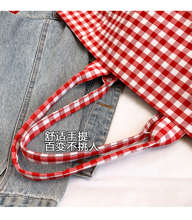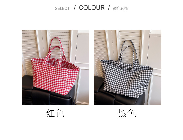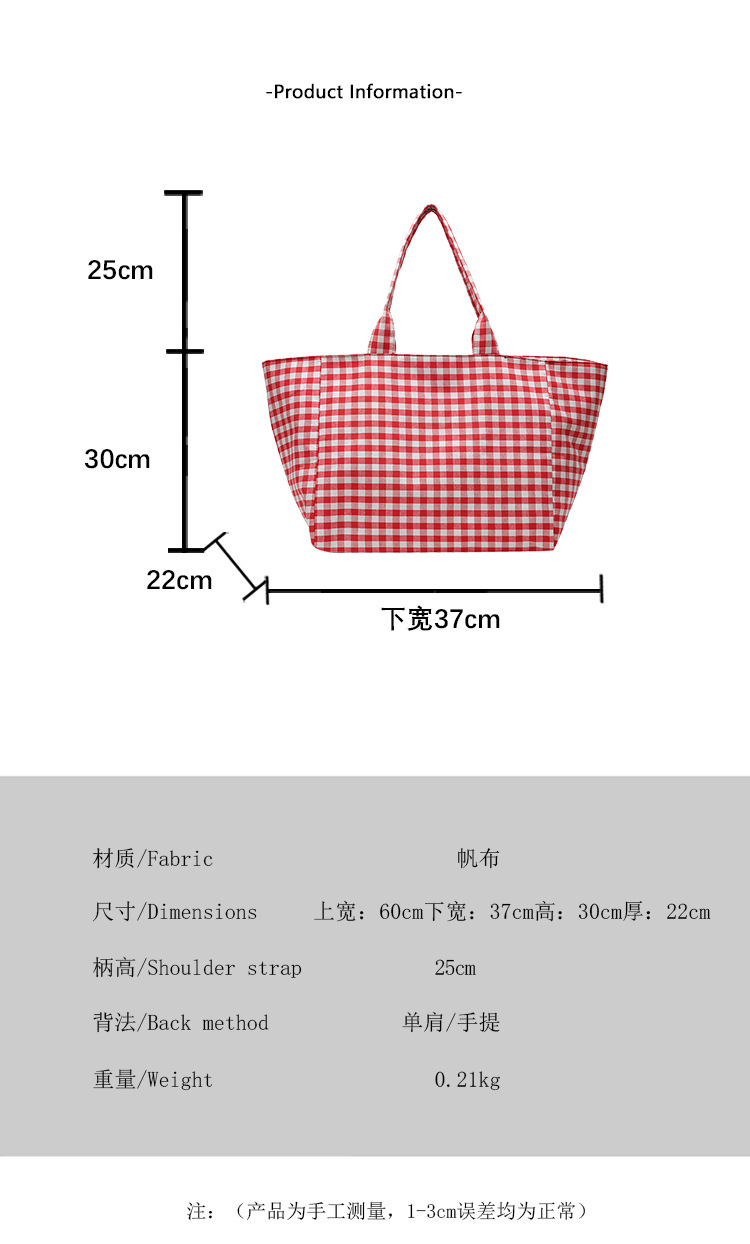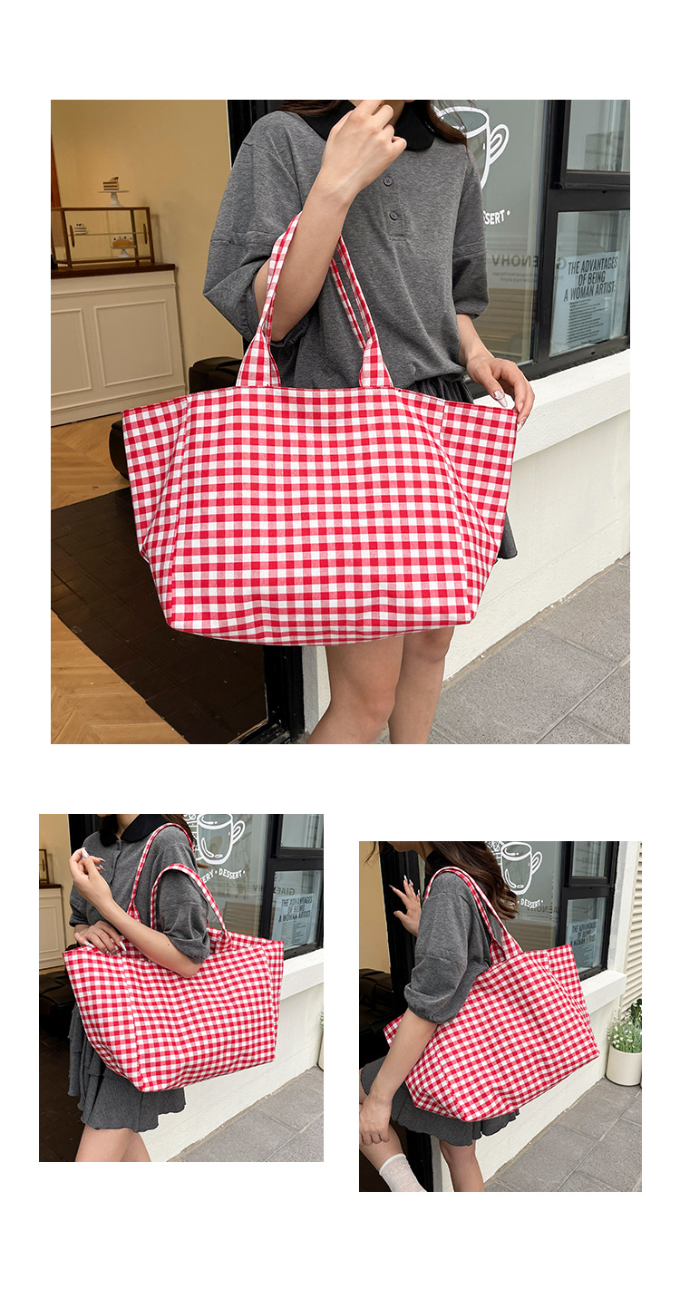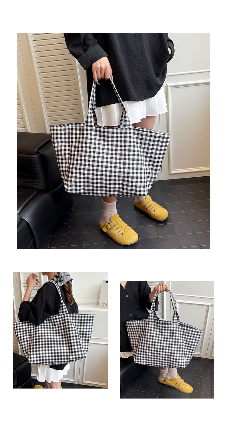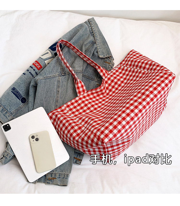 여성을위한 여름 문학 게으른 스타일 토트 백 새로운 대용량 격자 무늬 캔버스 캐주얼 클래스 어깨 겨드랑이 가방스토어 가기