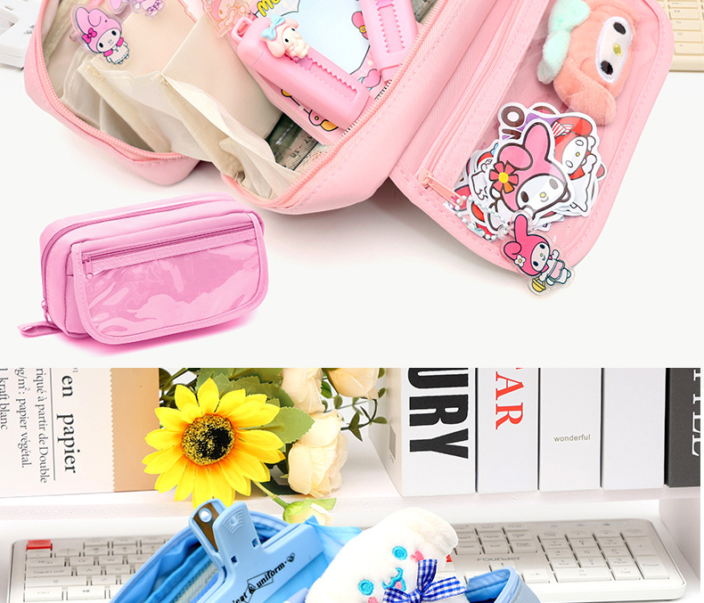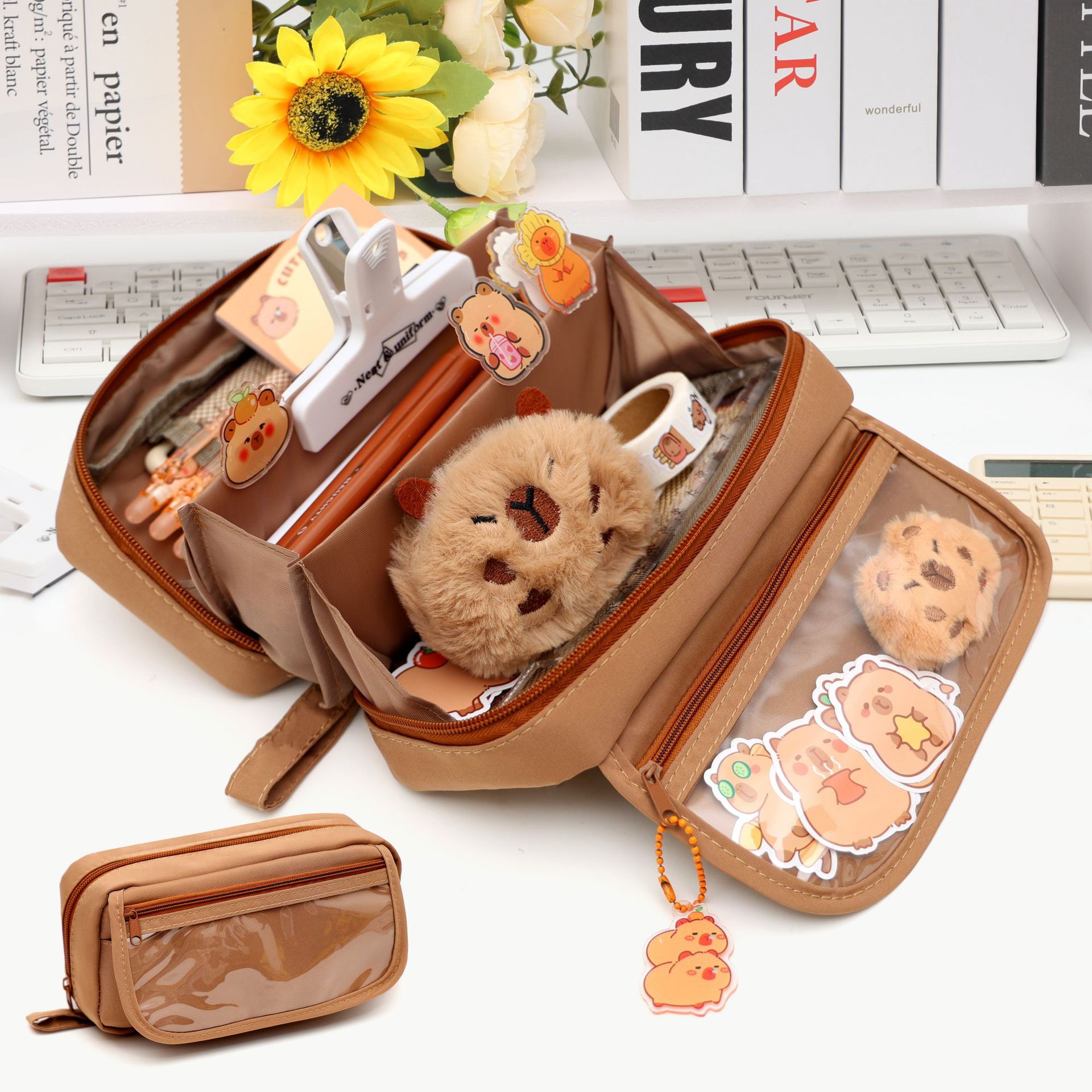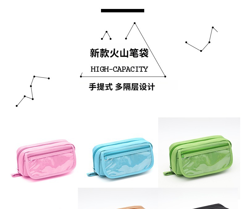 학교 시즌 초등학생, 중학생 및 소년 소녀를 위한 대용량 다층 투명 화산 필통, 매우 인기 있는 문구 보관함