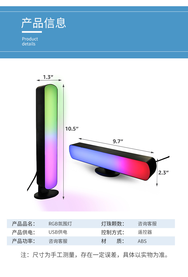 심포니 멀티 컬러 원격 제어 분위기 램프 바 테이블 램프 데스크탑 분위기 램프 야간 조명