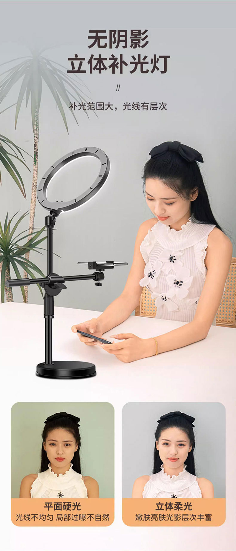 라이브 비디오 촬영 휴대폰 라이브 브라켓 필 라이트 정물 촬영 라이트 버섯 라이트 데스크탑 오버헤드 촬영 브라켓