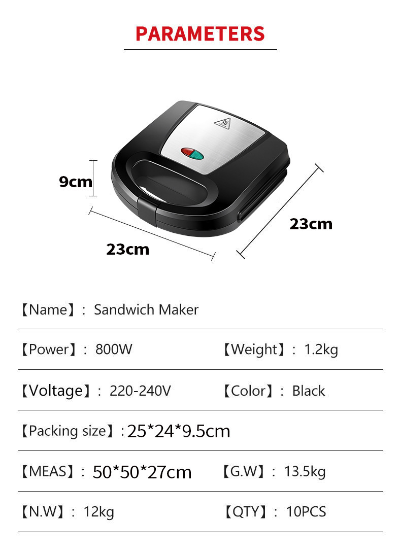 유럽 표준 크로스보더 샌드위치 메이커 아침 식사 기계 양면 가열 다기능 토스트 와플 메이커스토어 가기