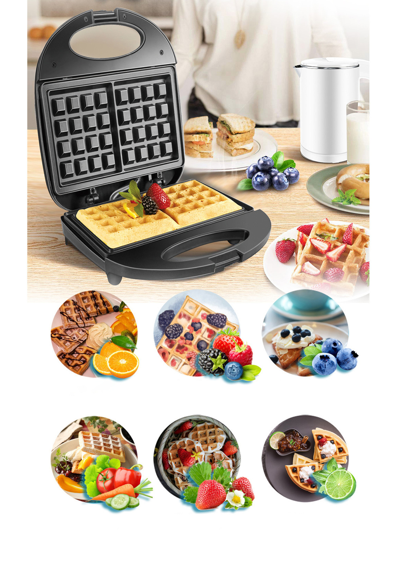 유럽 표준 크로스보더 샌드위치 메이커 아침 식사 기계 양면 가열 다기능 토스트 와플 메이커