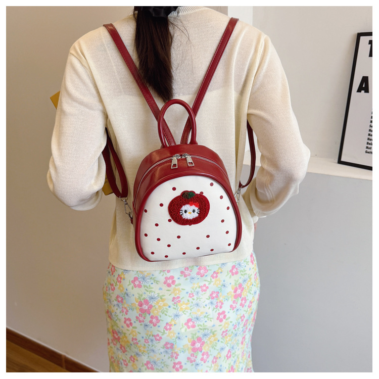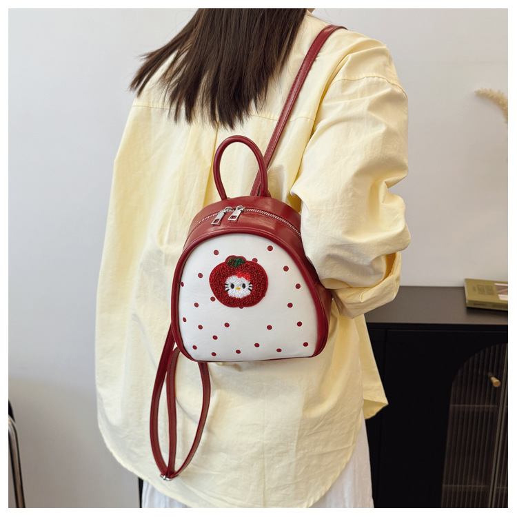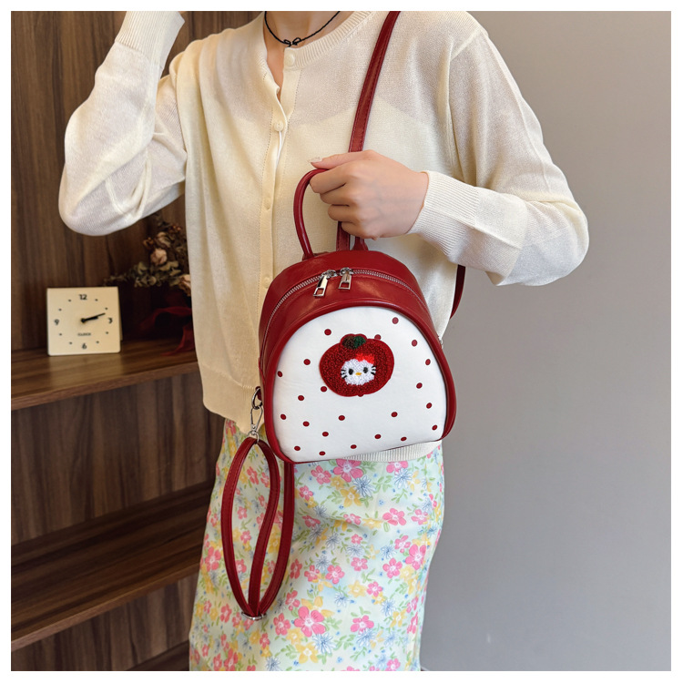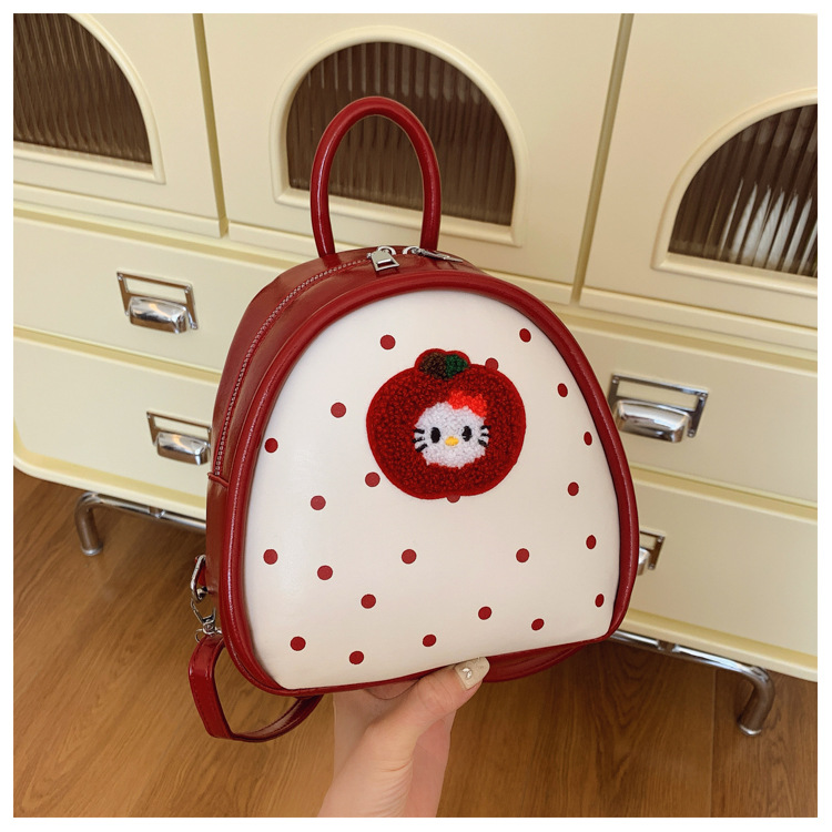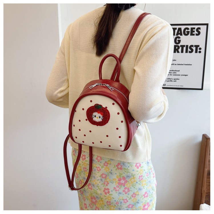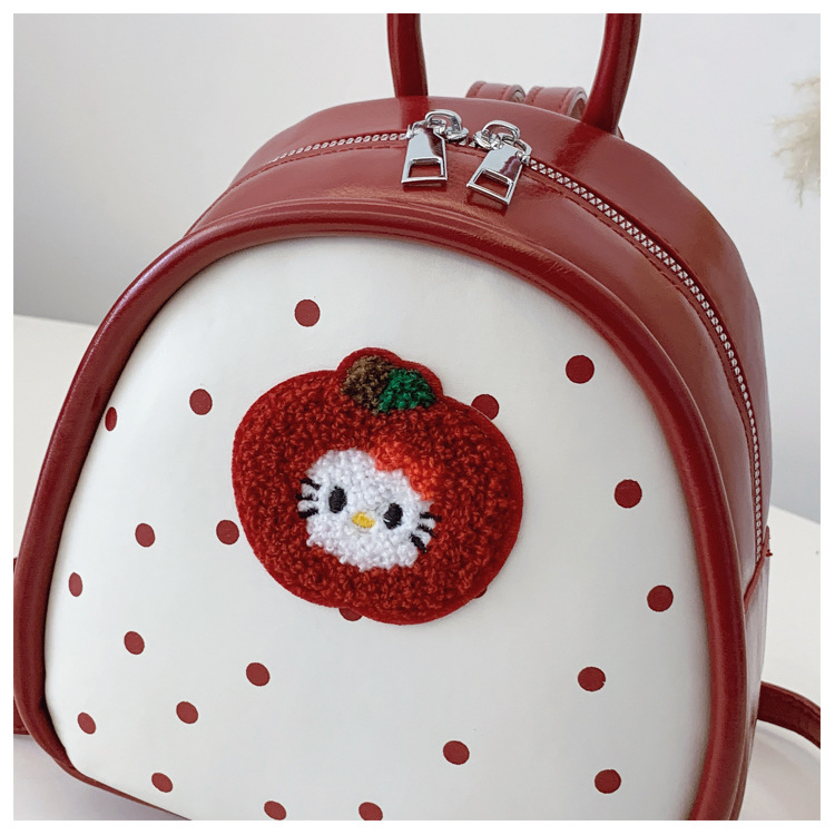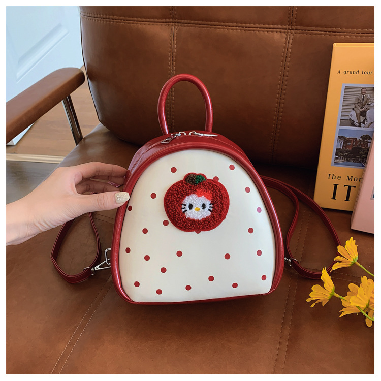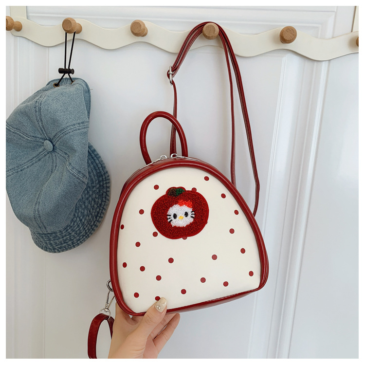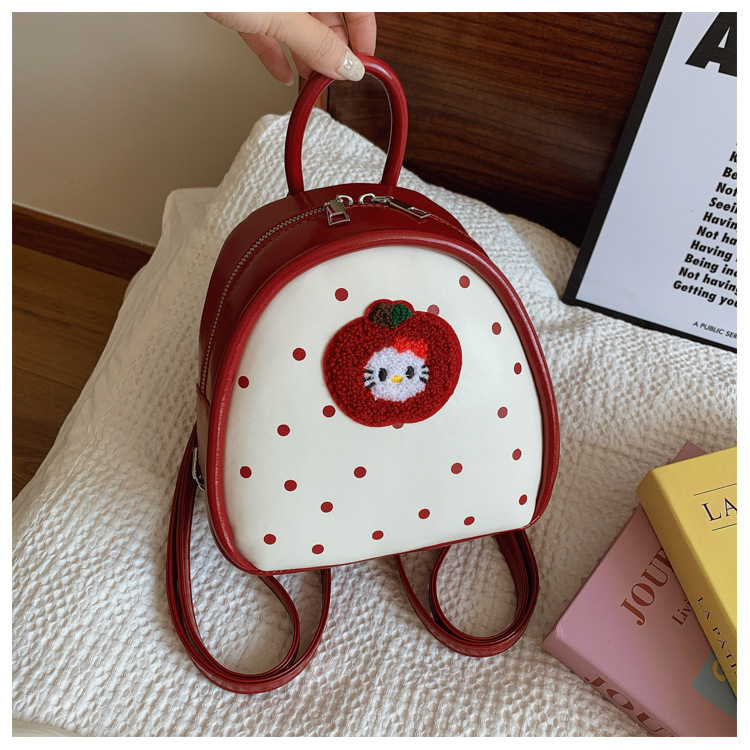 어린이 사과 폴카 도트 고양이 배낭 어린 소녀 다목적 귀여운 틈새 빨간색 핸드백 아기 여행 배낭