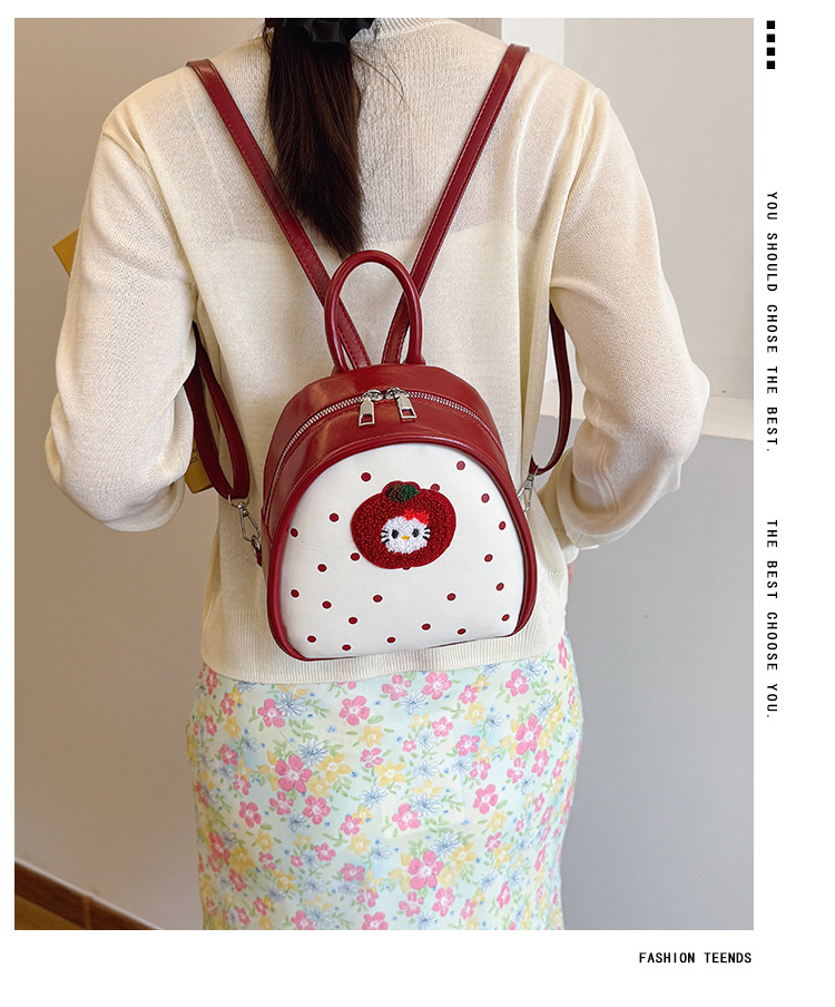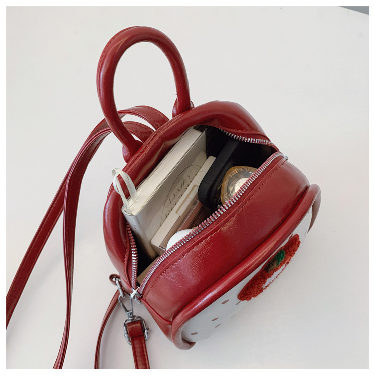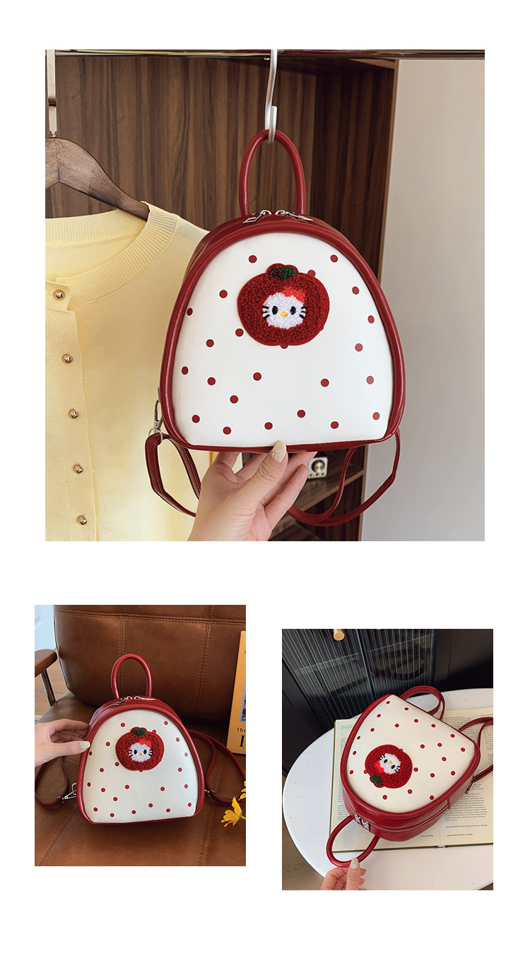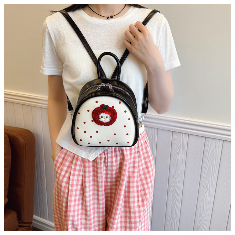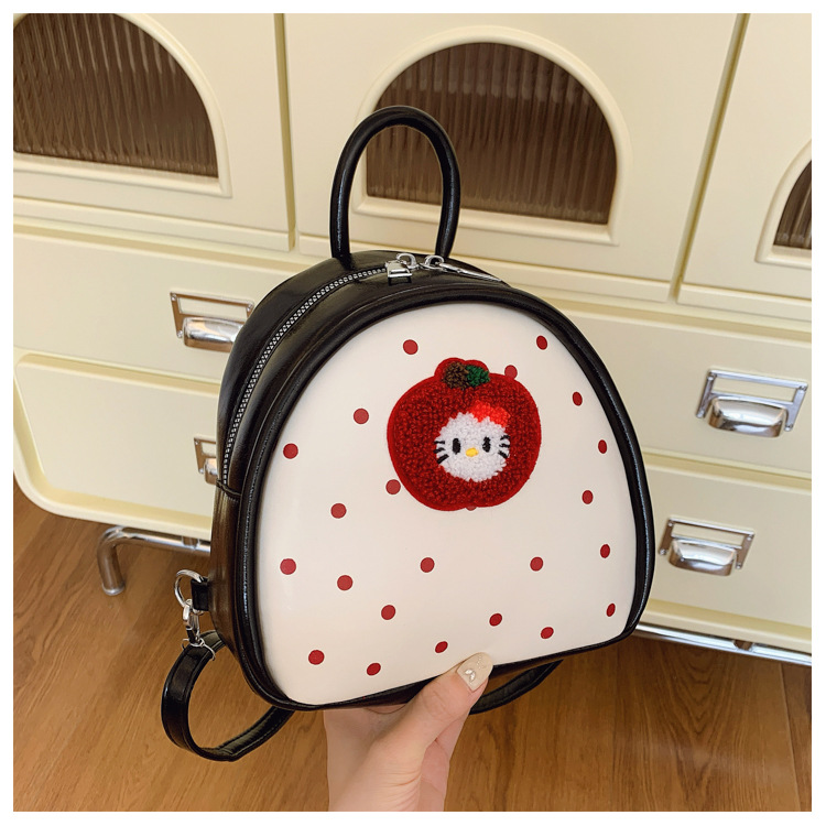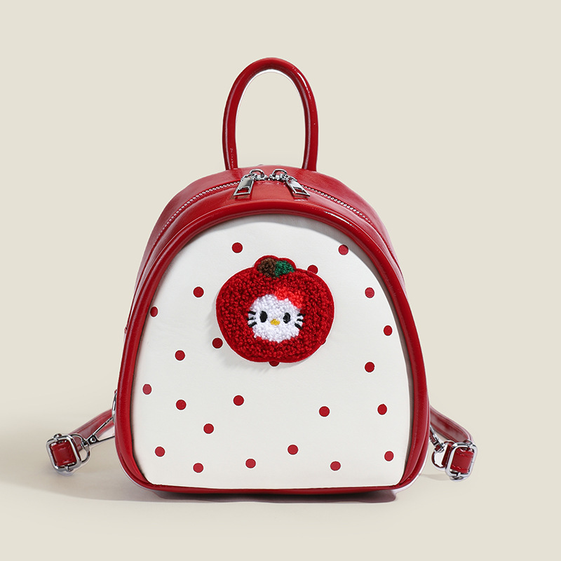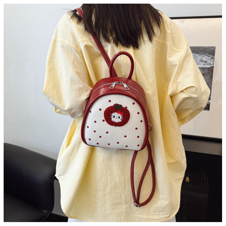 어린이 사과 폴카 도트 고양이 배낭 어린 소녀 다목적 귀여운 틈새 빨간색 핸드백 아기 여행 배낭